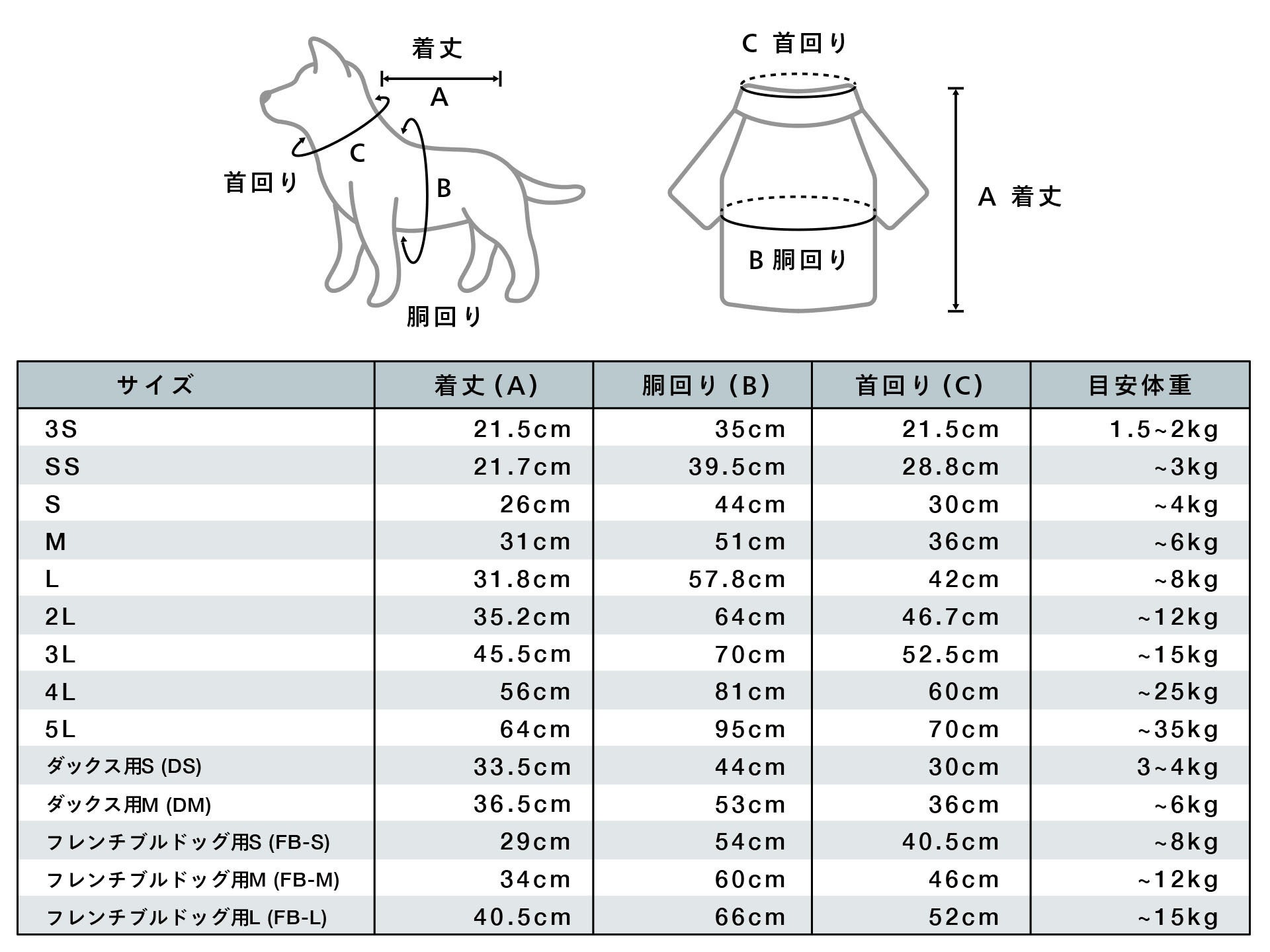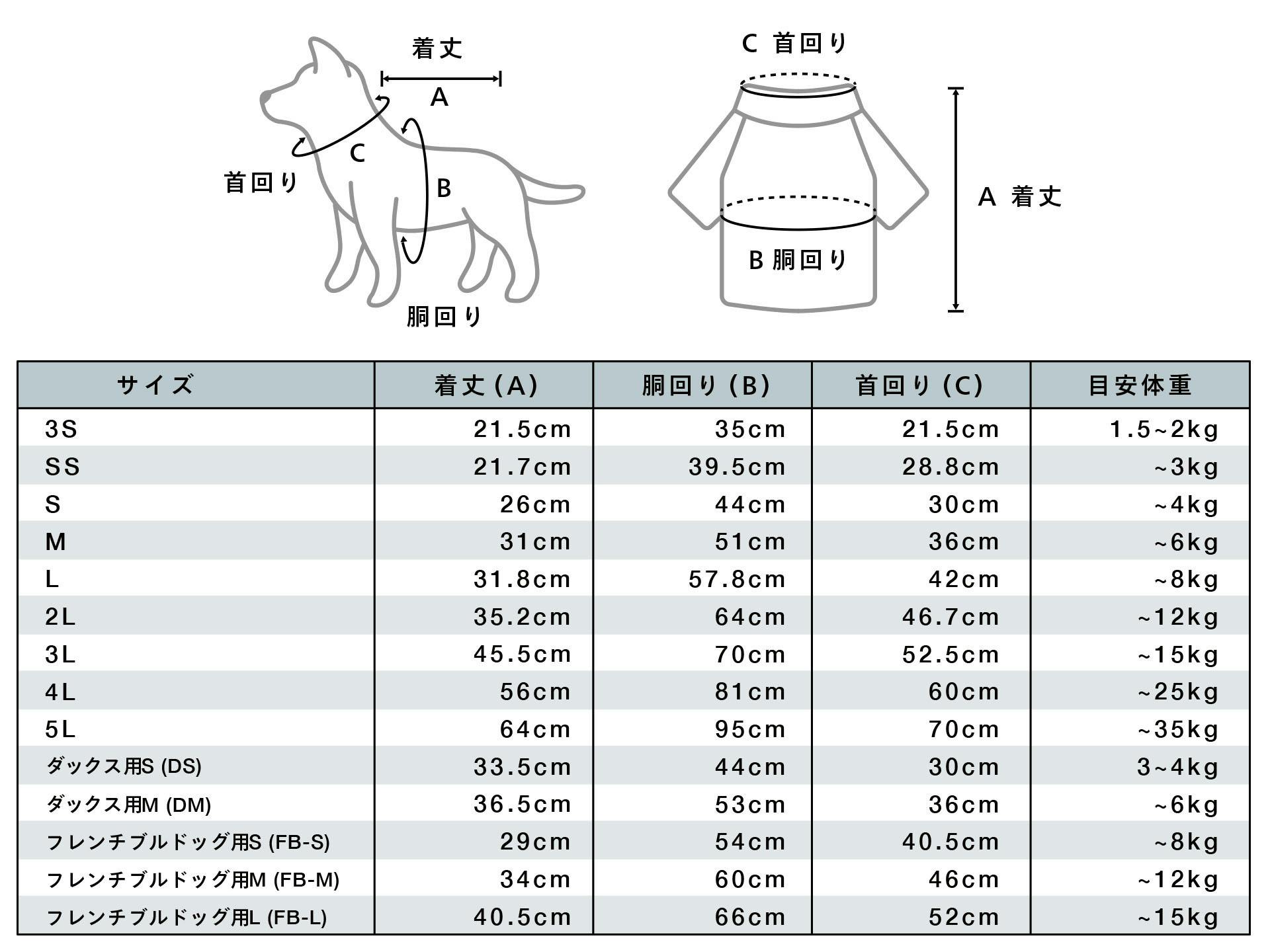 ・サイズについては<ドッグウェアサイズ>の表からお選びください。