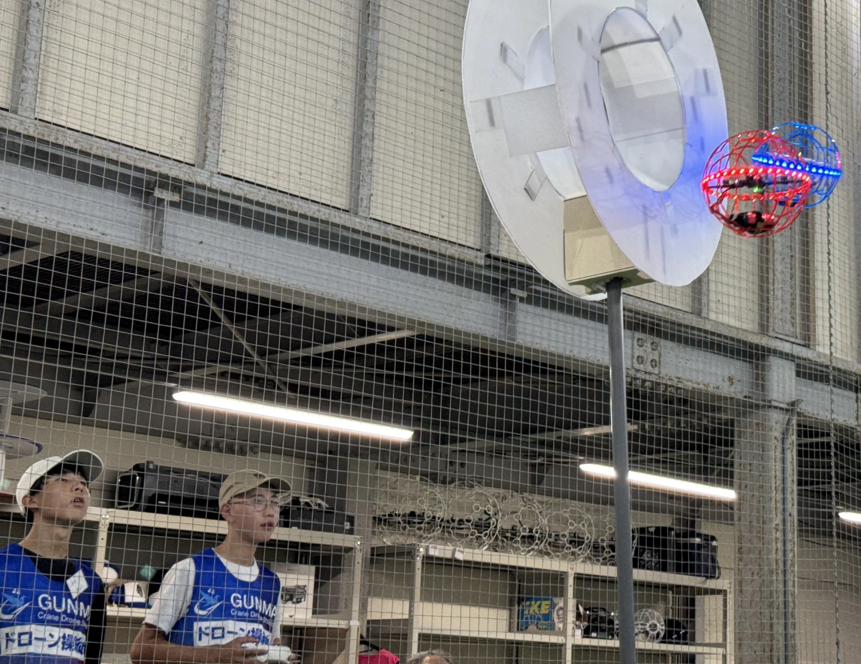 試合では、時速60kmに迫るスピードでの高速旋回や急停止、精密な空間認知によるゴール操作が求められ、さらに、複数機が同時に飛び交う中での接触回避やチーム連携も重要で、高度な操縦技術と集中力が試される競技です。
