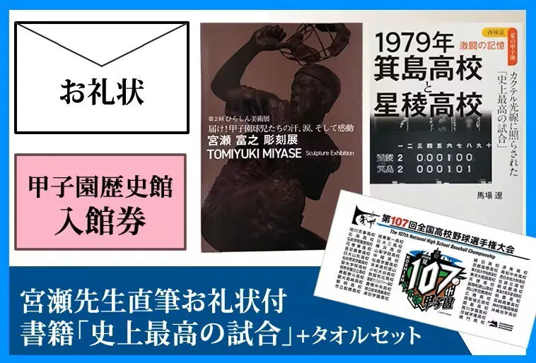 宮瀬先生直筆お礼状+写真集(お名前掲載)+甲子園歴史館 入館券+大会バスタオル+「史上最高の試合」 (再検証 夏の甲子園激闘の記憶) | 馬場 遼 1冊