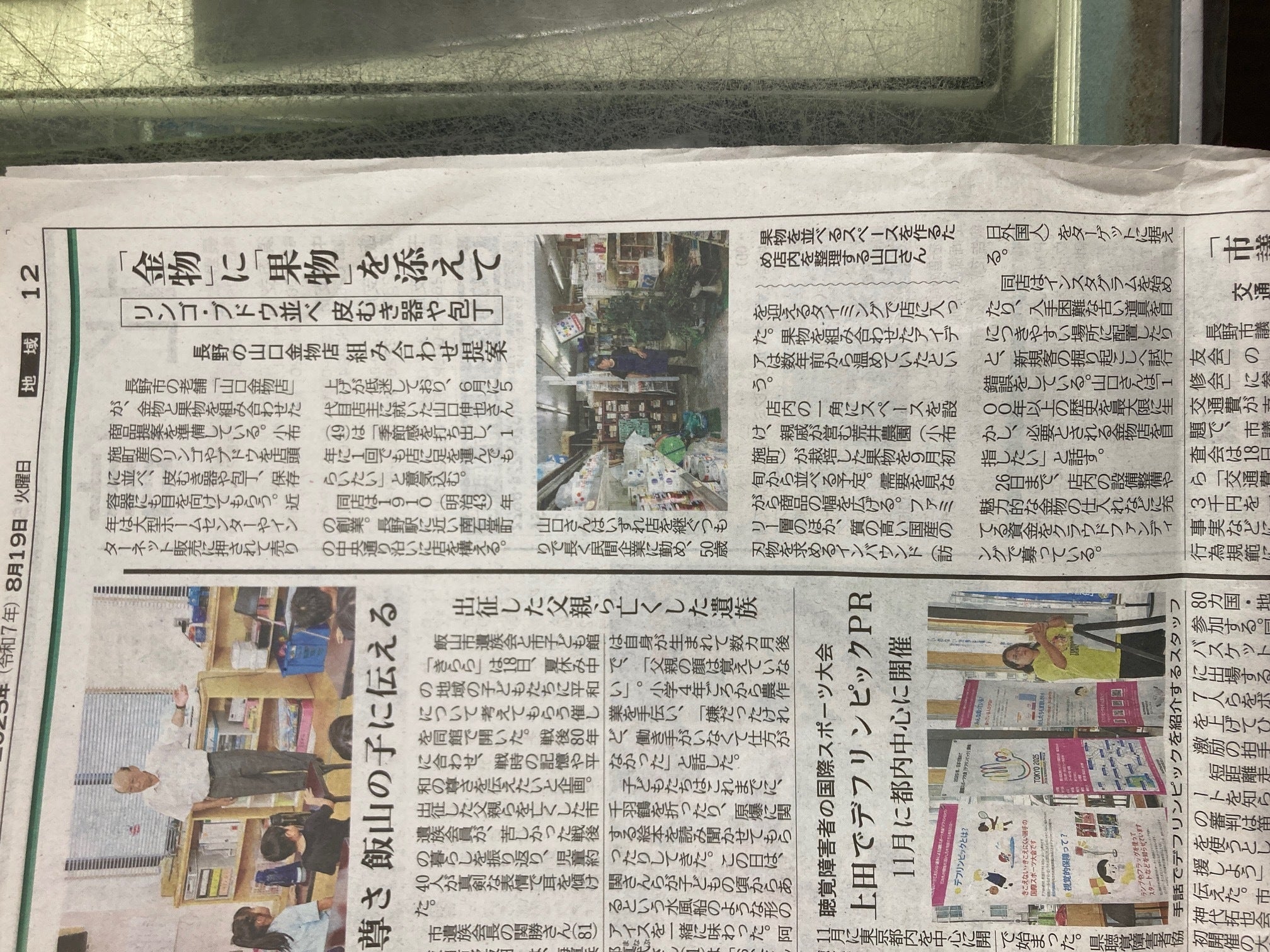 本日の信濃毎日新聞に、当店の取り組みを掲載していただきました取り上げていただけたこと、とても嬉しく思います(^^♪また、本日はSBCの取材も入り、こちらも無事に終わりました。放送は 9月1日(金) 13:55〜「ずくだせテレビ」 とのことです5代目も少し登場する予定です♪売り場が少しずつ形になっていくのを感じながら、これからも皆さまに楽しんでいただけるお店を目指してまいります。