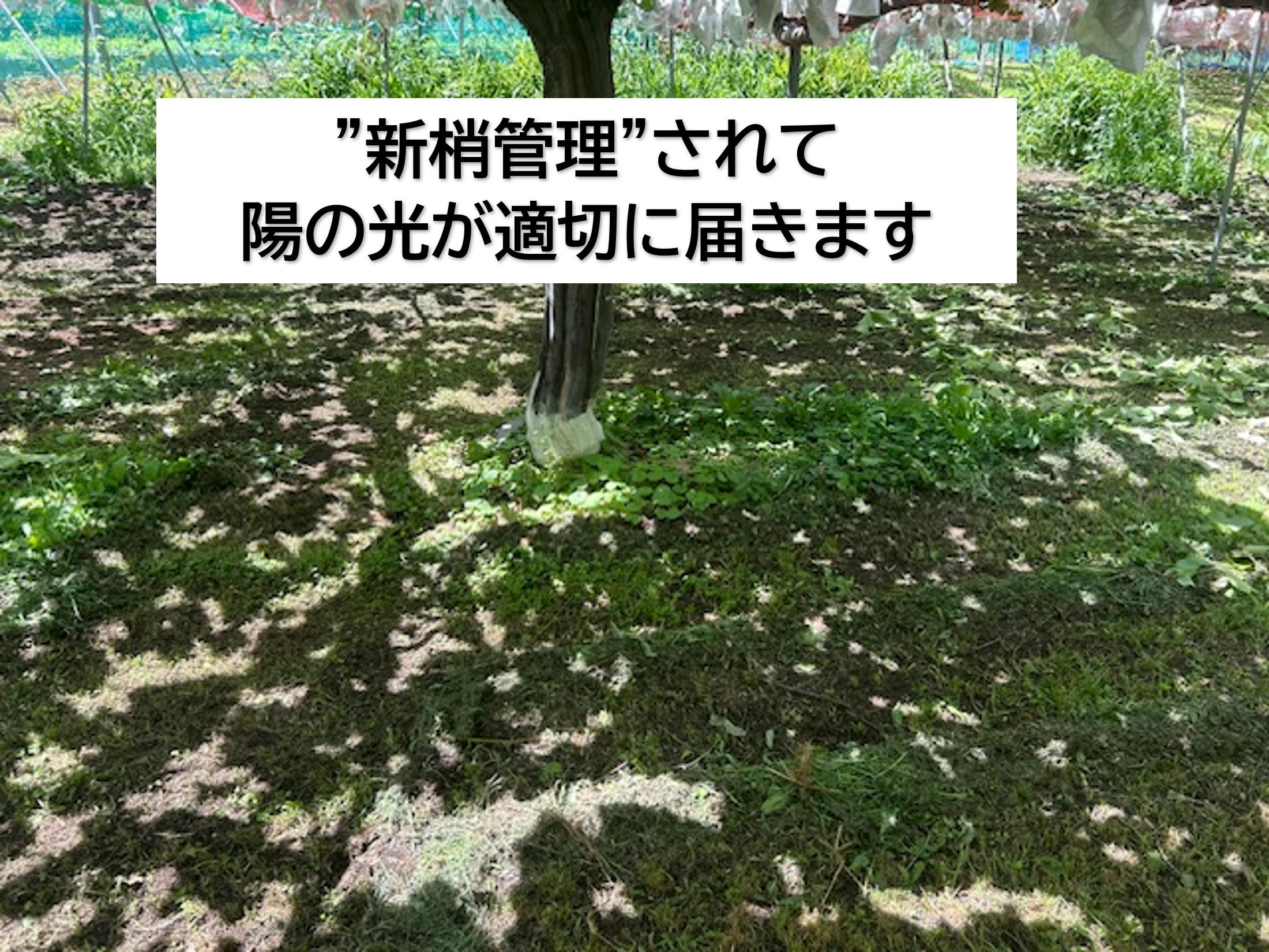そのために、枝や葉を丁寧に間引き、実に光を届ける「新梢管理(しんしょうかんり)」という作業がとても重要です。