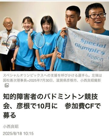 こんにちは。SOオリンピックス日本・滋賀です。クラウドファンディングの目的にしておりました、国スポ・障スポのオープン競技「SOバドミントン全国大会」が10月19日に無事閉会しました。10月18日~2日間でアスリート約100名、コーチ、ボランティア、付帯イベント等の参加者を含めますと計約600名がプロシードアリーナHIKONEに集いました。多くの方にSOの活動を知っていただく機会になったのではと感じています。クラウドファンディングの支援金は、香港選手団や他府県から参加するアスリートの参加費・旅費に活用させていただきます。また、リターン品は順次発送いたしますので、お楽しみにお待ちください。この度は温かなご支援を誠にありがとうござました。今後ともどうぞよろしくお願いいたします。スペシャルオリンピックス日本・滋賀
