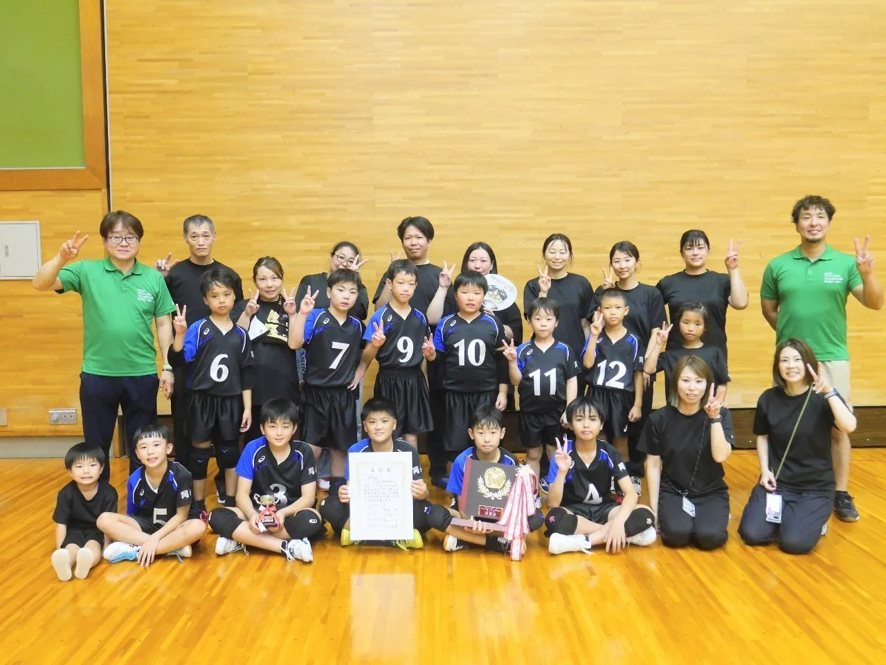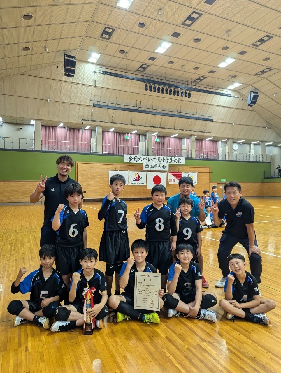 2025/10/04 19:41所属する東備地区のスポーツフェスティバル大会に参加させていただきました!今日は⑤が不在レギュラー1名不在での参加なので5年以下のちびちゃんずも緊張の1日(((* ॑˘ ॑* ≡ * ॑˘ ॑*)))ソワソワ昨年度優勝の為トロフィーを変換しまた、持って帰る事を目標に挑みました!いい感じの雰囲気を保てています!シャイニィの隠し玉サービスエース⑧番も絶好調(^ ^)決勝戦では点差を開く事ができて最年少ボーイ11番もコートに立たせてあげる事ができました!(o^^o)皆でいい雰囲気を保ち結果は優勝確実に1歩1歩前進しております(*^^*) もっと見る