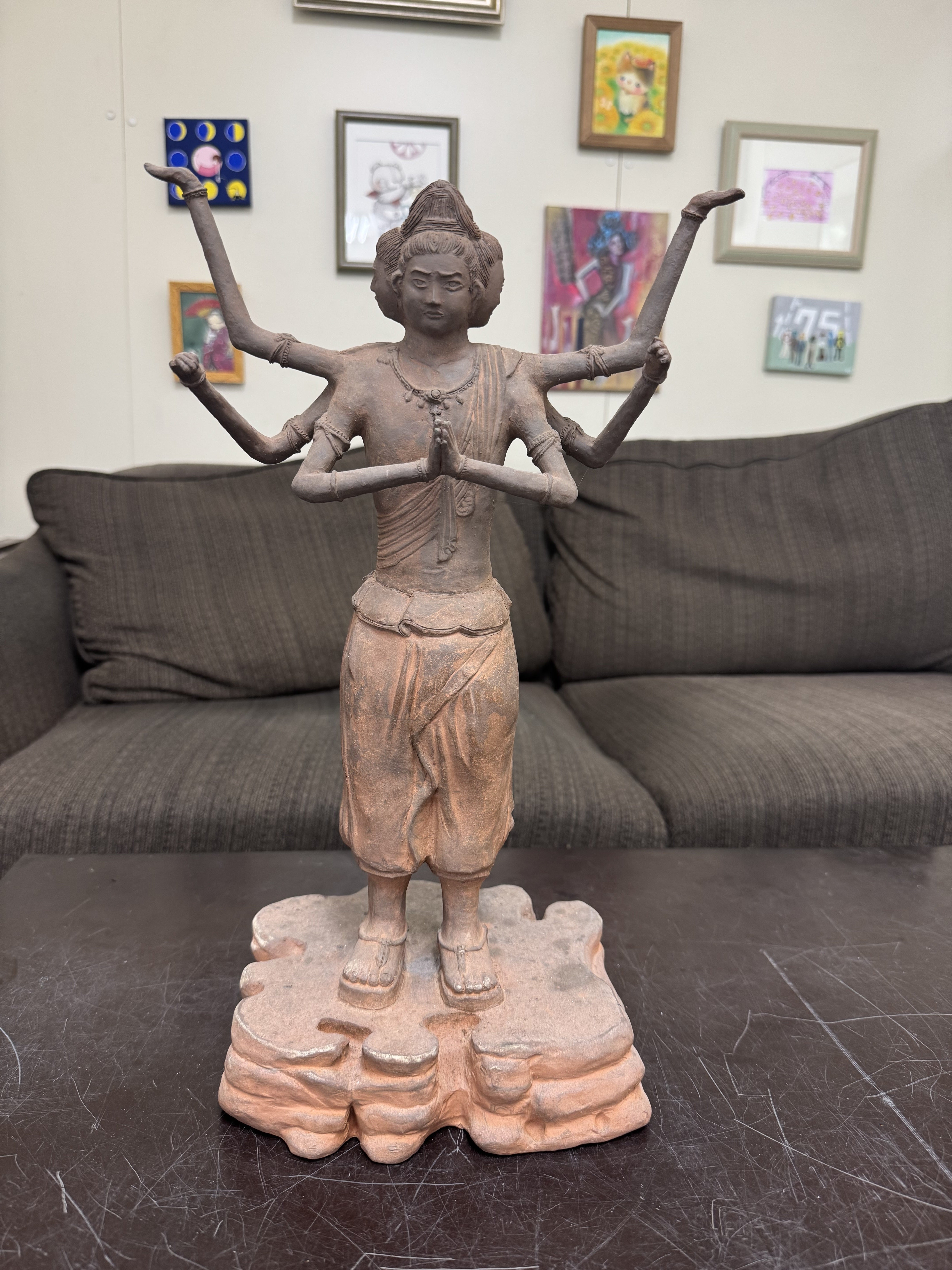 2025/08/17 11:09光彩初めてのクラファンもあと10日あまりになりました。皆様の温かいご支援のおかげで約70%の達成率となりました。ありがとうございます。最後のリターン品として、私の代表作、備前焼阿修羅像を載せます。備前焼では阿修羅のこの腕は細すぎて、再現不可能と言われてました。元々理系でしたので、阿修羅の手を空洞化できれば、激しい炎に耐える事ができるのではないか?と思い、何回も失敗しましたが、やっと成功したのがこの阿修羅像です。郵送が困難なため、私が直接お届けに参ります。もし、魂入れが必要な場合は私が魂入れをさせていただきます。備前焼阿修羅像によって私の人生は変わりました。全国のデパートの美術画廊で今まで10年以上個展をさせていただいてます。私の仏像は美術画廊でしか販売しないのでもし良かったらこの機にご支援していただけたらありがたいです。 光彩 もっと見る