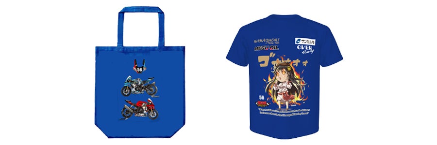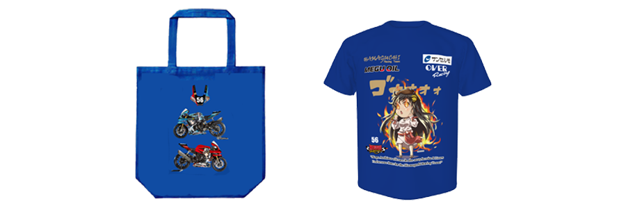 E.【非売品】碧志摩メグの2025鈴鹿8耐レーシングマシンデザイン トートバック + TEAMスタッフTシャツ(通常販売品_サイズ S,M,L,LL )