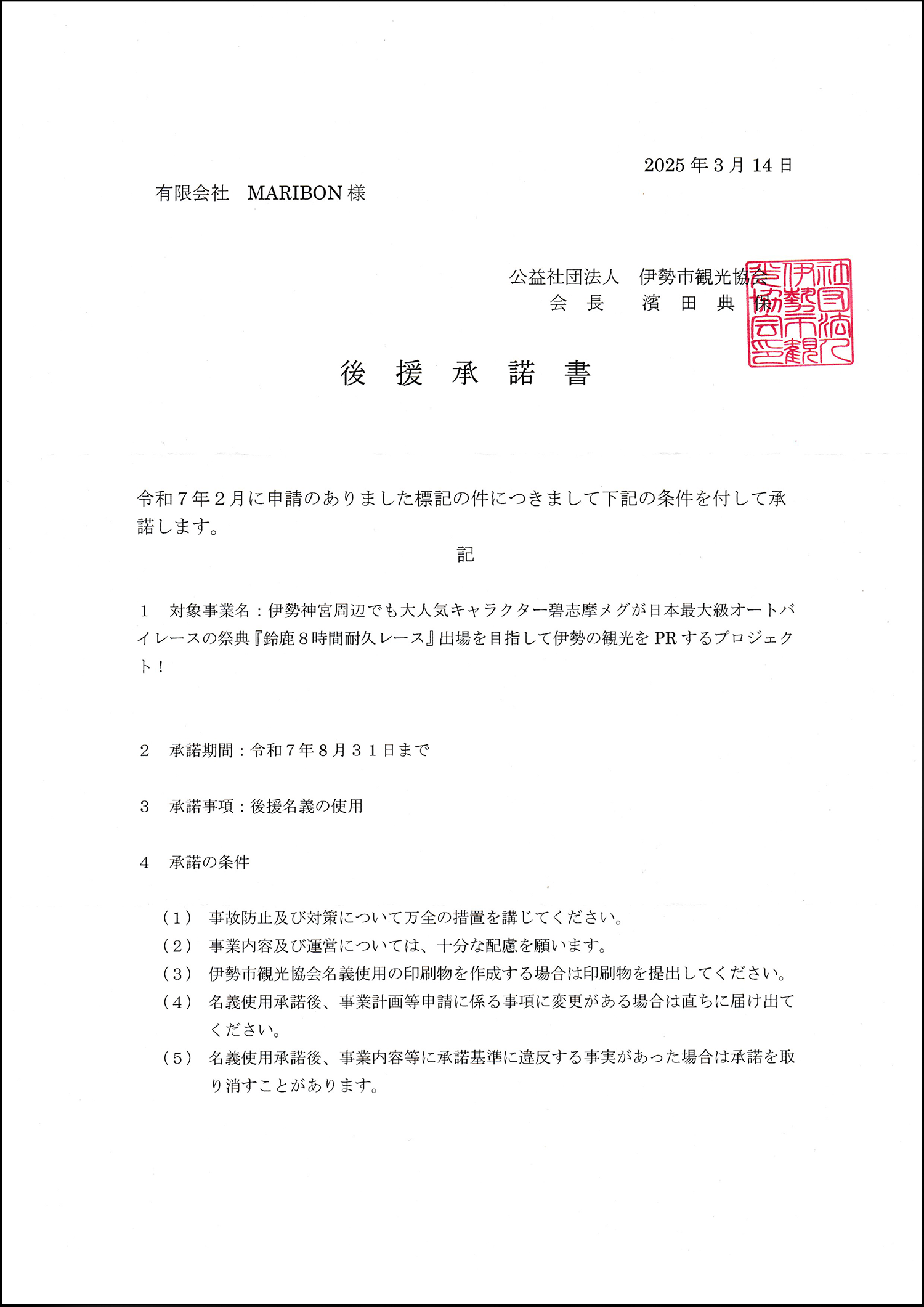 碧志摩メグが10周年を迎え、世界的な舞台『鈴鹿8耐』へ初挑戦。この大きなチャレンジは、地域の観光PR活動としても新たな試みとなり、伊勢市観光協会の後援をいただくことができました。地元の方々からも、多くの期待と応援をいただいており、プロジェクトへの期待と関心が一段と深まっています。