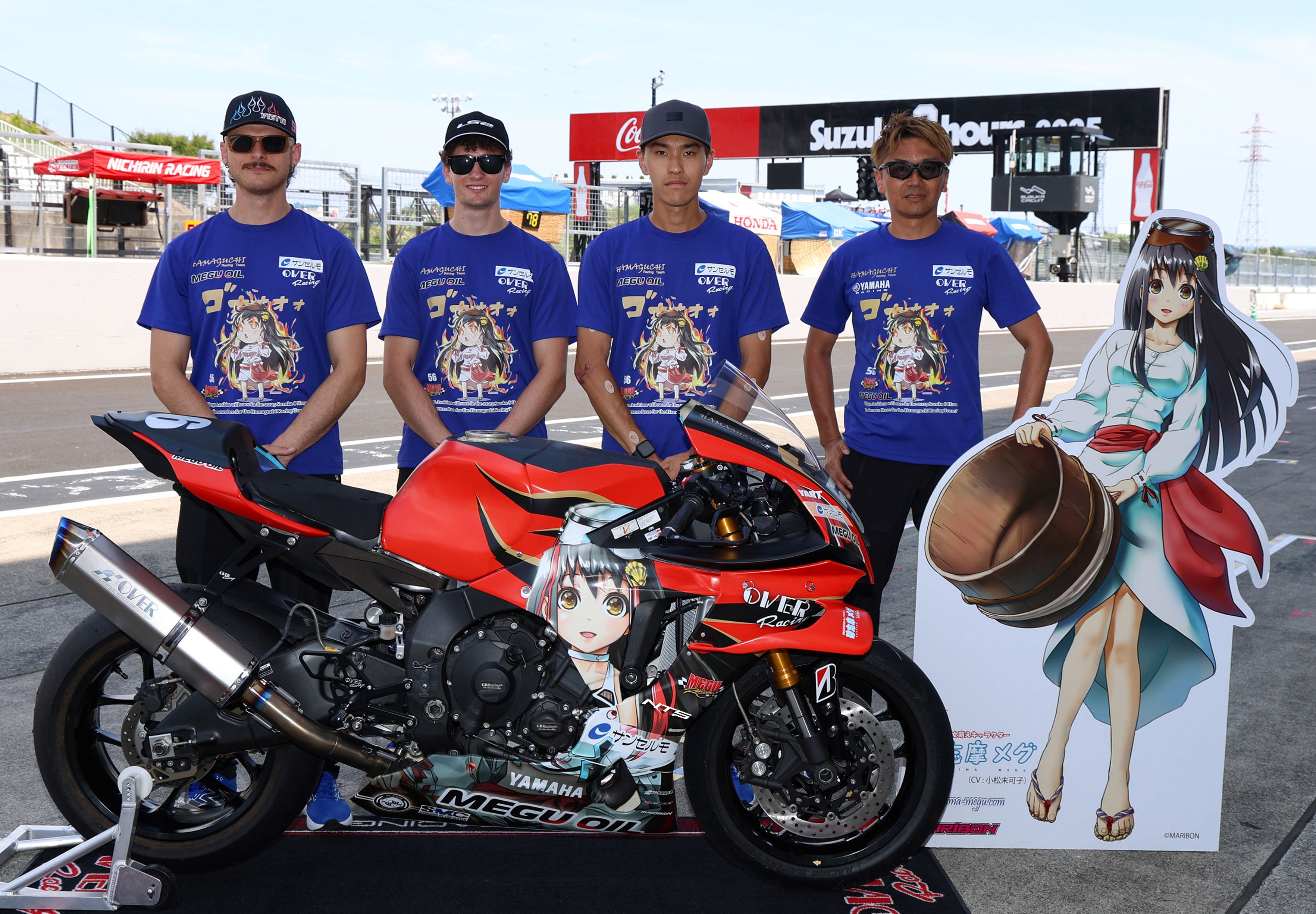 今回、鈴鹿8耐に挑戦したチーム NO.56「AOSHIMA MEGU with HAMAGUCHI Racing」は、横山尚太選手(日本)、Jan Mohr選手(オーストリア)、Doriano Vietti Ramus選手(イタリア)の3名のライダーが参戦します。チーム名の通り、碧志摩メグが描かれた「痛バイク」での挑戦は、ただのバイクレースにとどまらない、オタク文化の発信として世界的に大きな注目を集めること間違いなしです!