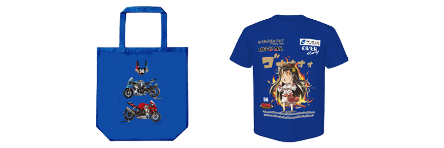 E.【非売品】碧志摩メグの2025鈴鹿8耐レーシングマシンデザイン トートバック + TEAMスタッフTシャツ(通常販売品_サイズ S,M,L,LL )