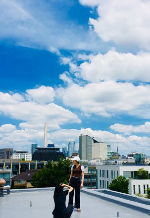 都内にある建物の屋上で撮影