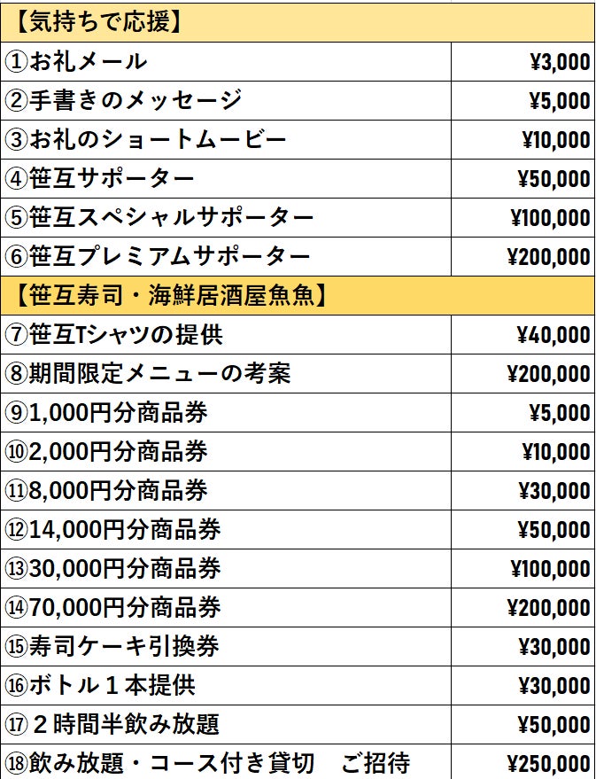 皆様にとって「笹互寿司」と「海鮮居酒屋 魚魚」が、サービスを通して地域の温もりや笑顔を作る場所として、再び輝きを取り戻せるよう、皆様からの温かいご支援を心よりお願い申し上げます。