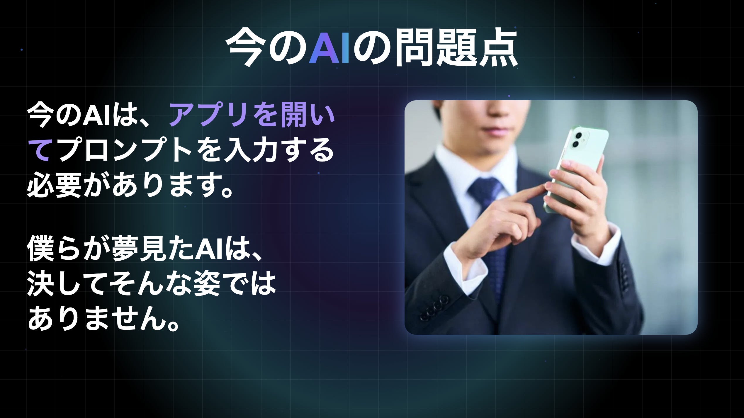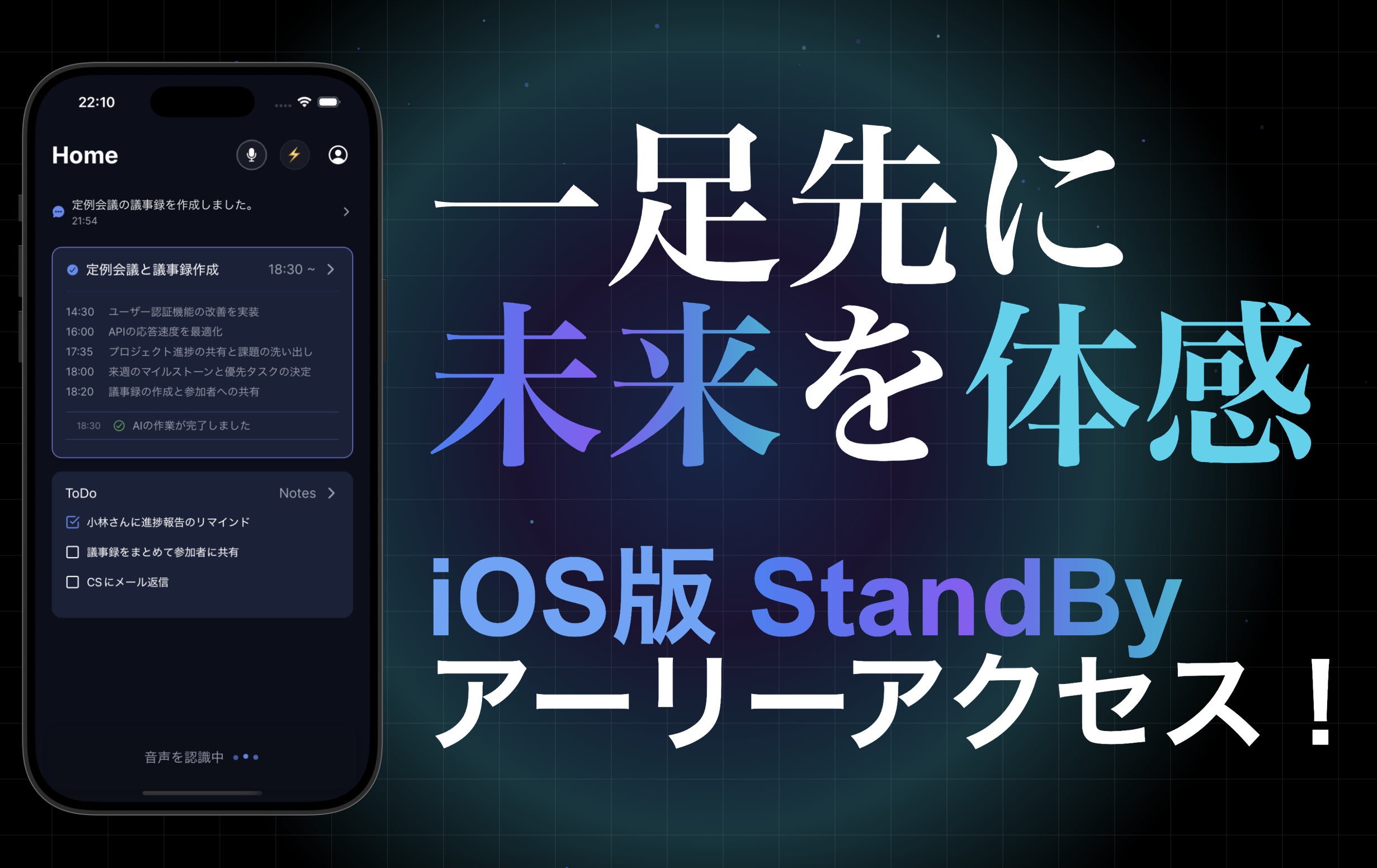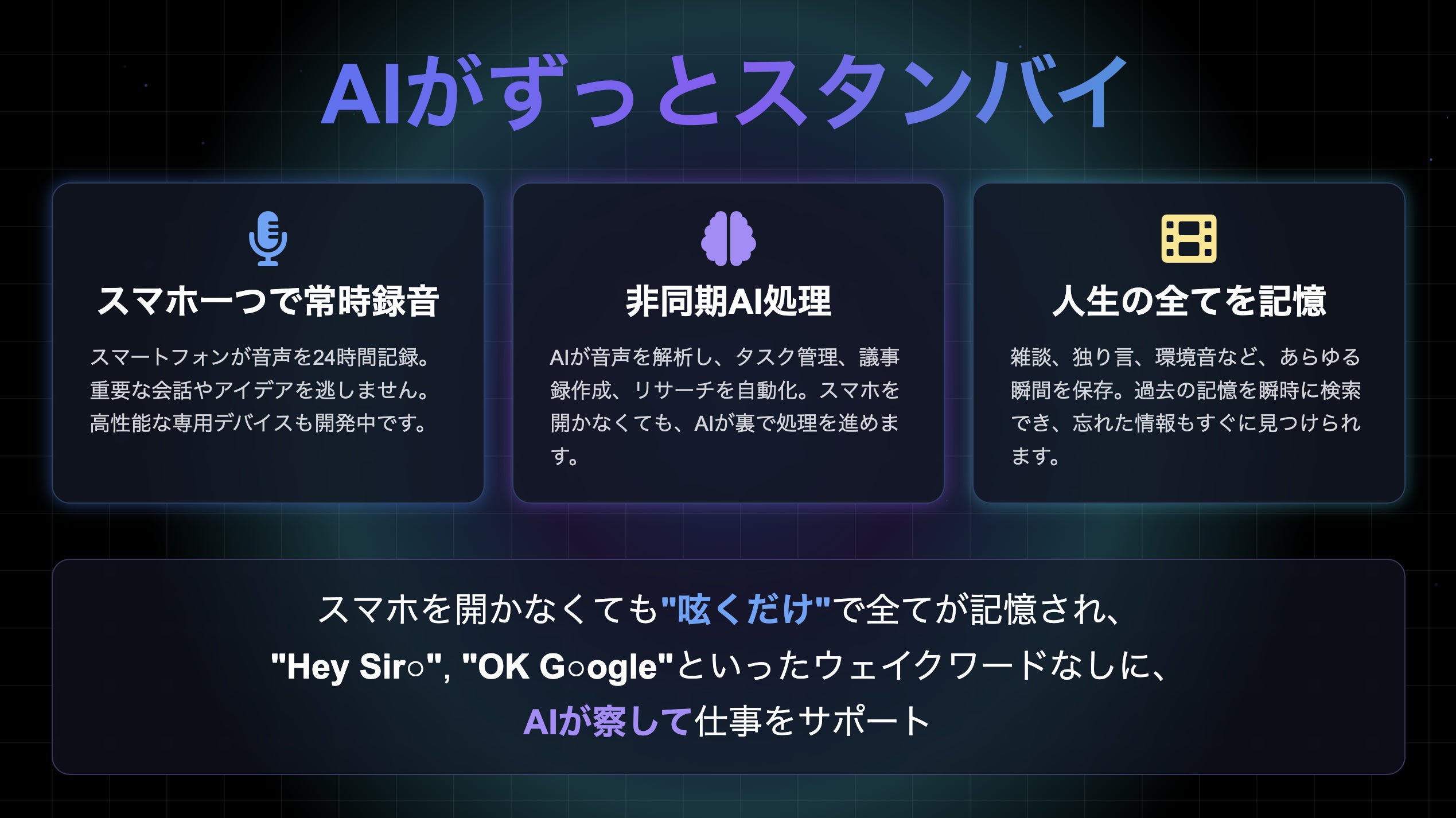 スマホを開かなくても“呟くだけ"で全てが記憶され、AIが察して能動的にタスクを実行します。