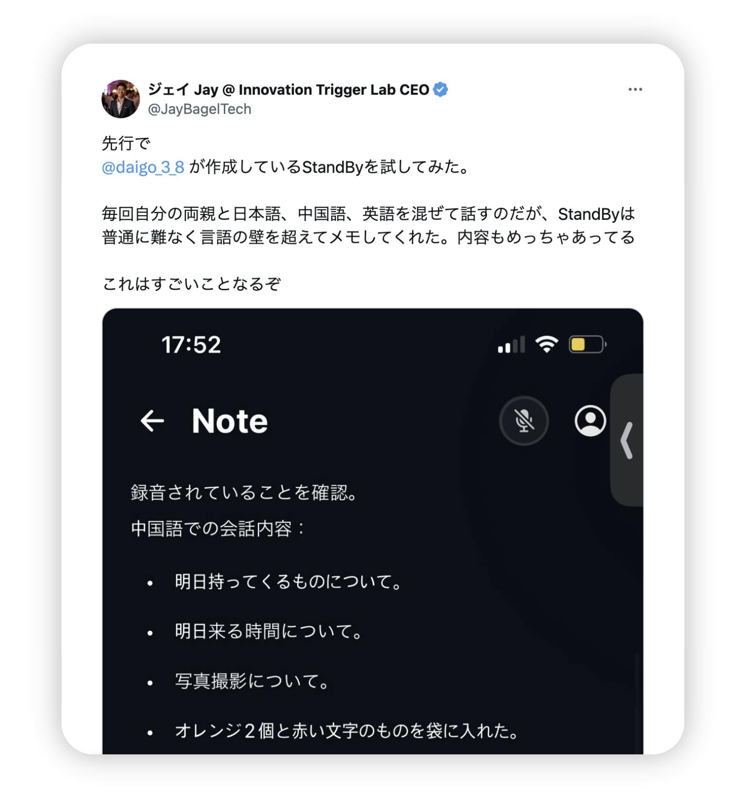 「僕が考えるAIの未来」「StandByの設計思想」などなど、このページでは伝えきれない技術や思想を語り合いましょう!!