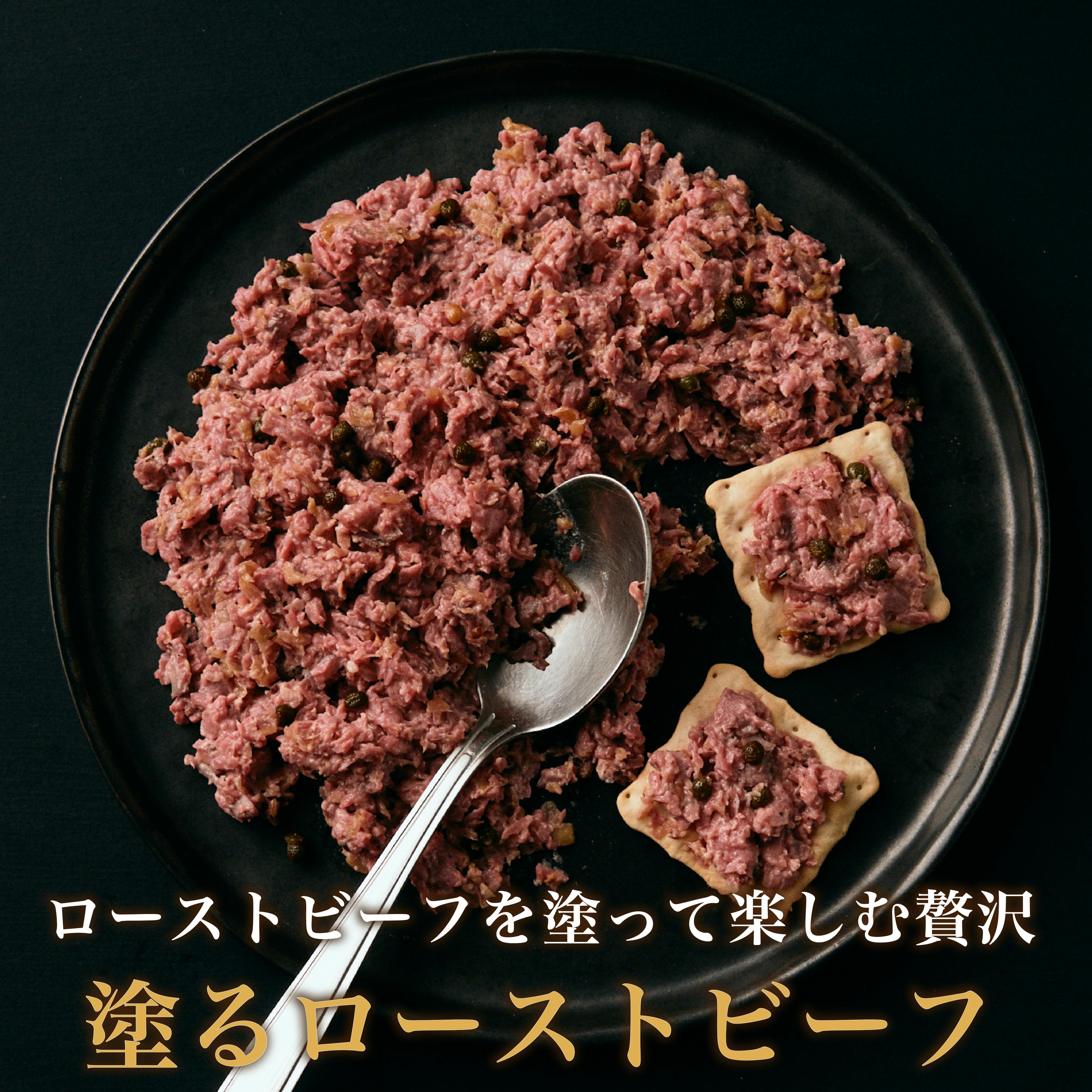 その名も、”塗る”ローストビーフ。しっとり仕上げたローストビーフを贅沢に粗く刻み、クラッカーやパンに“塗って”味わう、リエット風の新感覚ペーストです。
