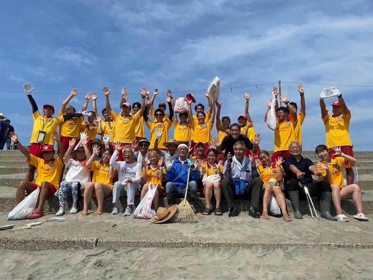 毎練習会の初めに、活動する浜でビーチクリーン活動を行っています。また、毎月第一日曜日午前9時から30分間のビーチクリーンイベントを開催し、地域のご家族連れや企業の方、サーファーさんと共に鹿嶋の海浜美化を手掛けています。