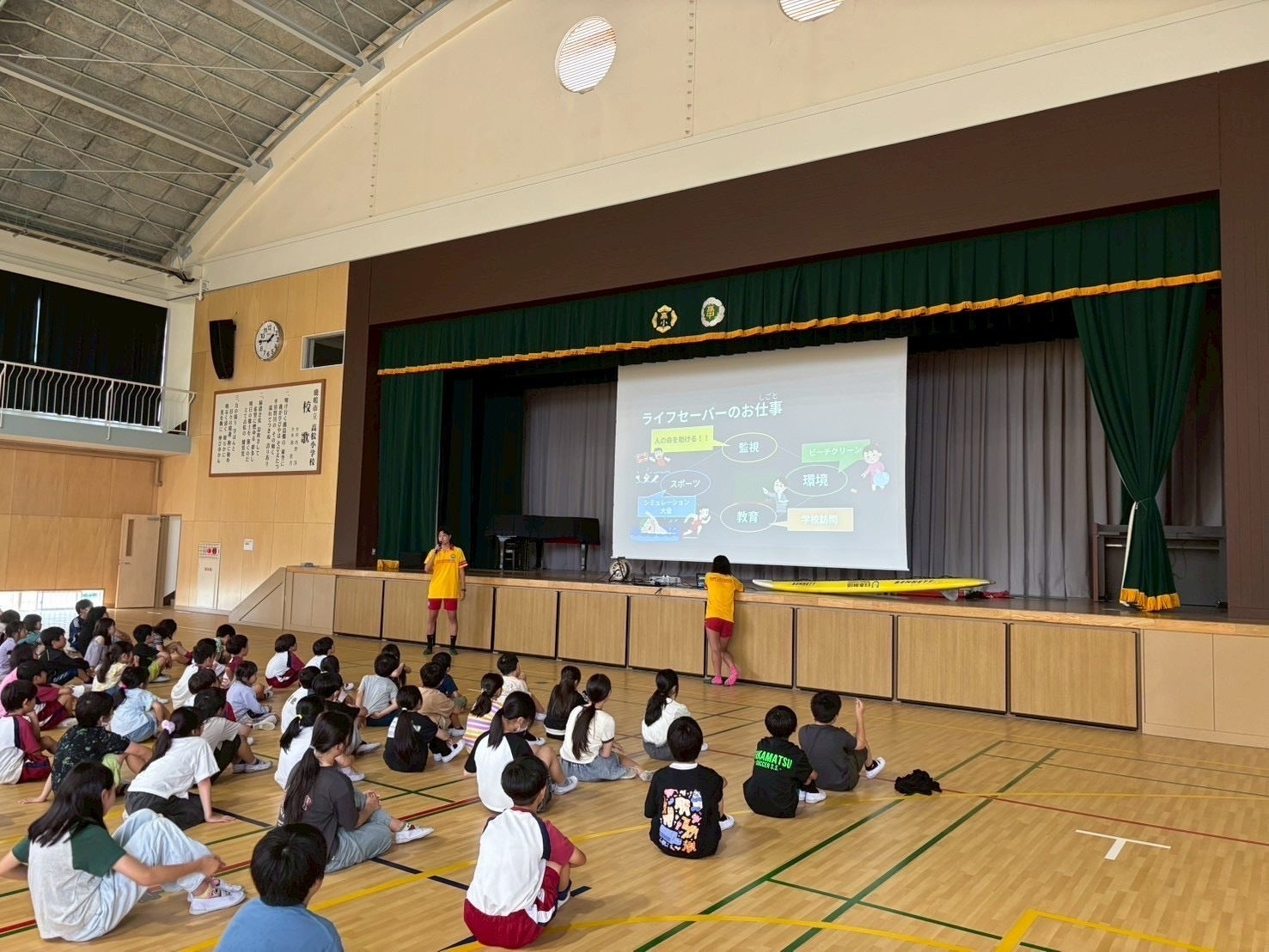 毎年6月から7月にかけて、鹿嶋市の幼稚園から高校までの教育機関へ足を運び、「海の安全教室」と題して海で安全に楽しく遊ぶためのノウハウを提供しています。2025年度では、計13の幼稚園及び学校で開催することができました。