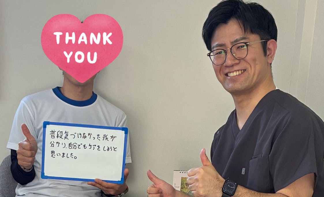 普段、リラクゼーションサロンでマッサージをしていらっしゃるプロの方ですが、「普段気づけなかった所が分かり、自分でもケアをしようと思いました。」とコメントをいただき、プロでも気づきにくい視点でのアドバイスと施術ができたものと思います。