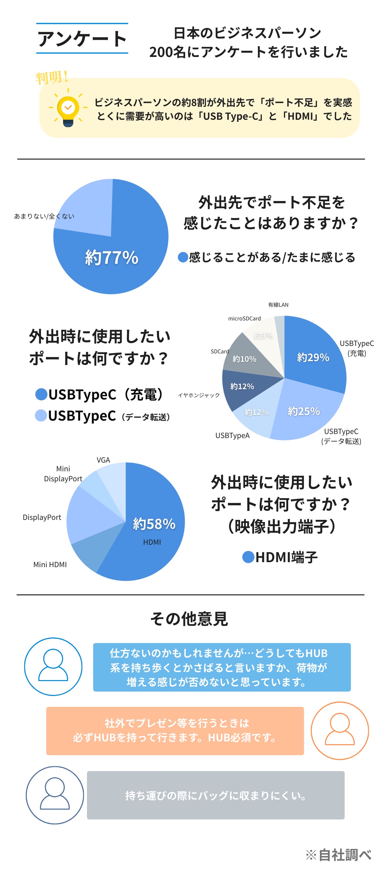 USB Type-Aの利用やHDMIでの映像出力にも多くの声が寄せられました。