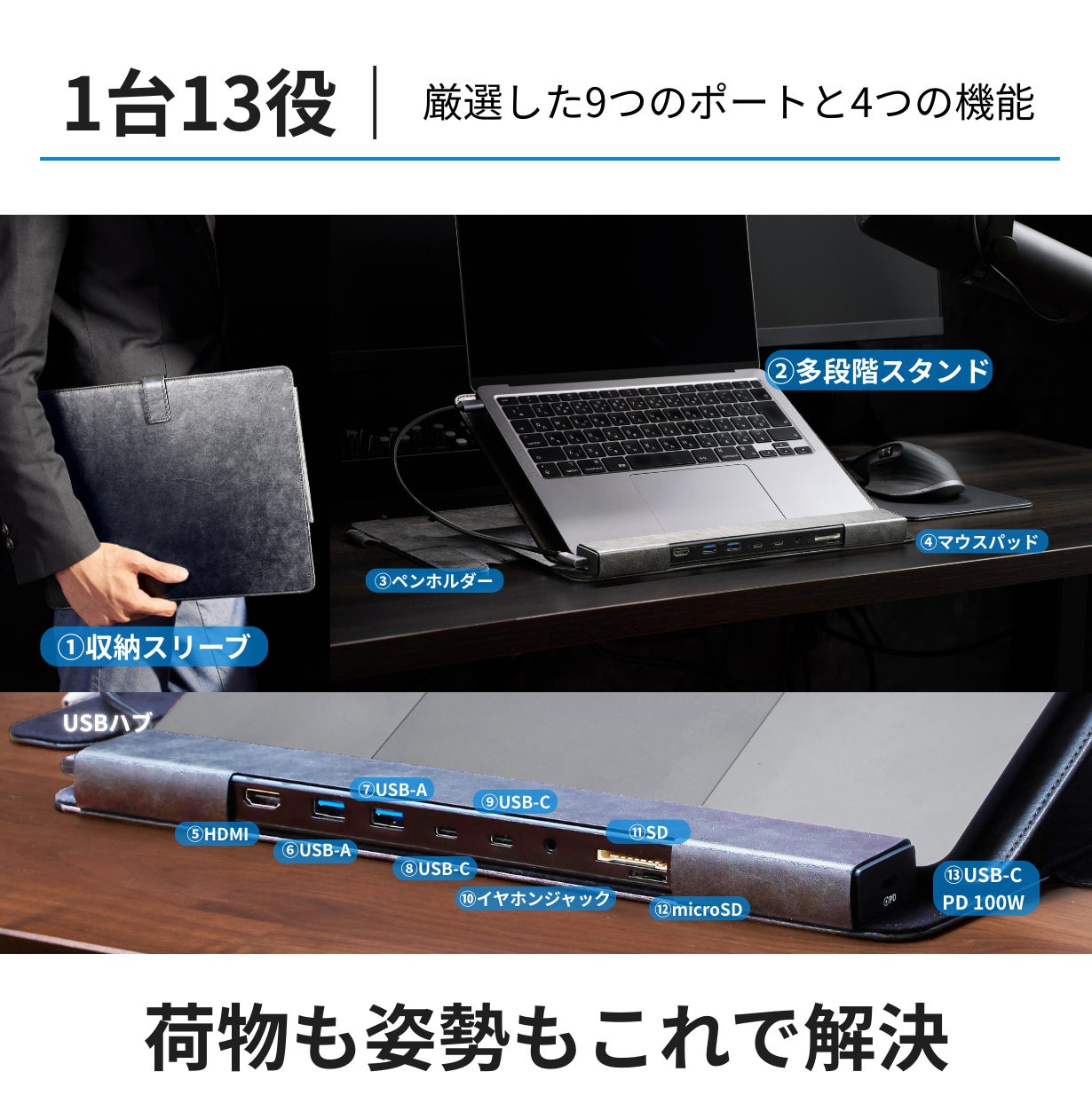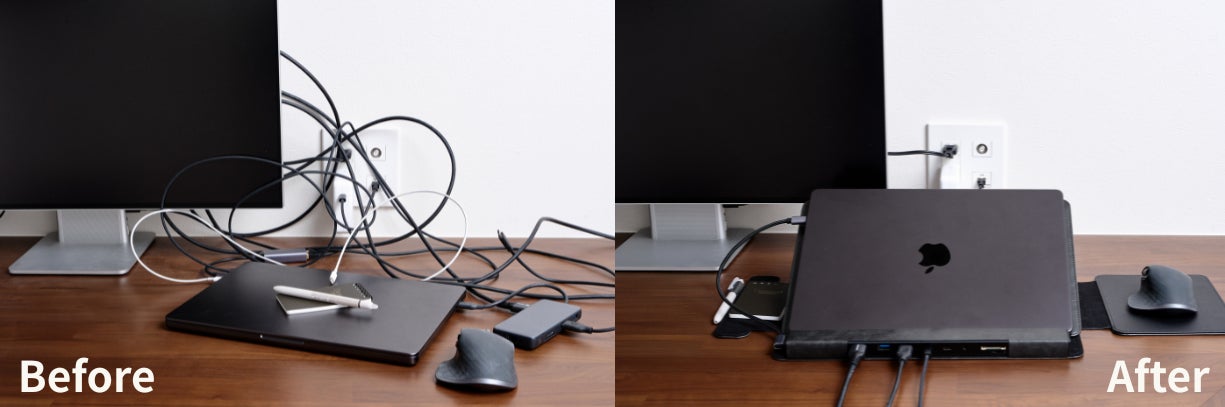 しかし、忙しい日々では「スタンドがない」「ポートが足りない」「HUBを忘れてしまった..」など、ちょっとしたうっかりが積み重なるものです。