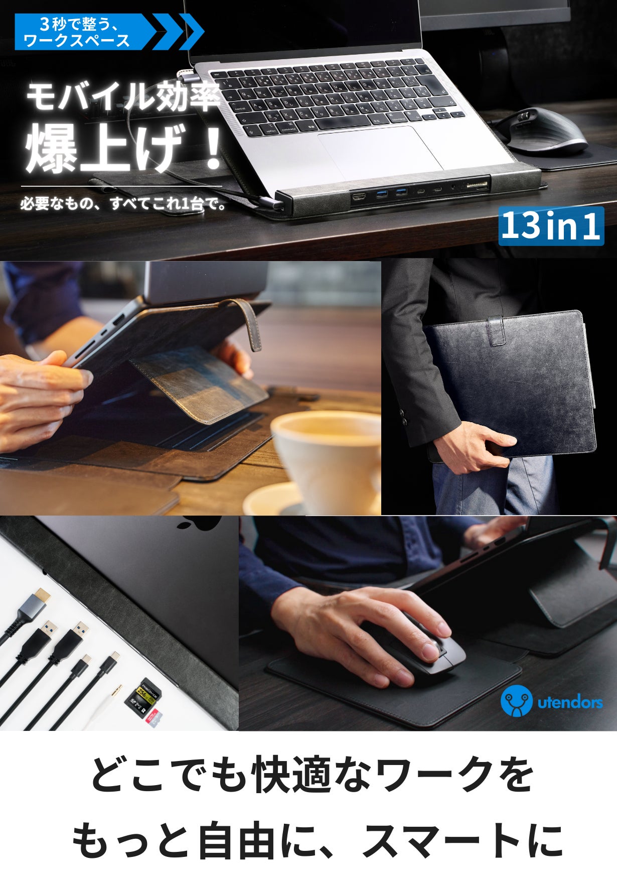 utendorsのオールインワンスタンドHUBは、より効率的で快適なモバイル空間を実現します。