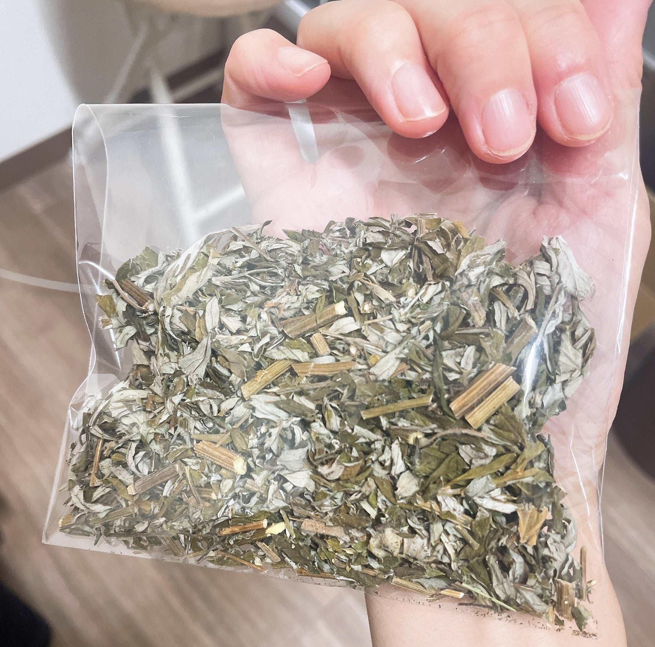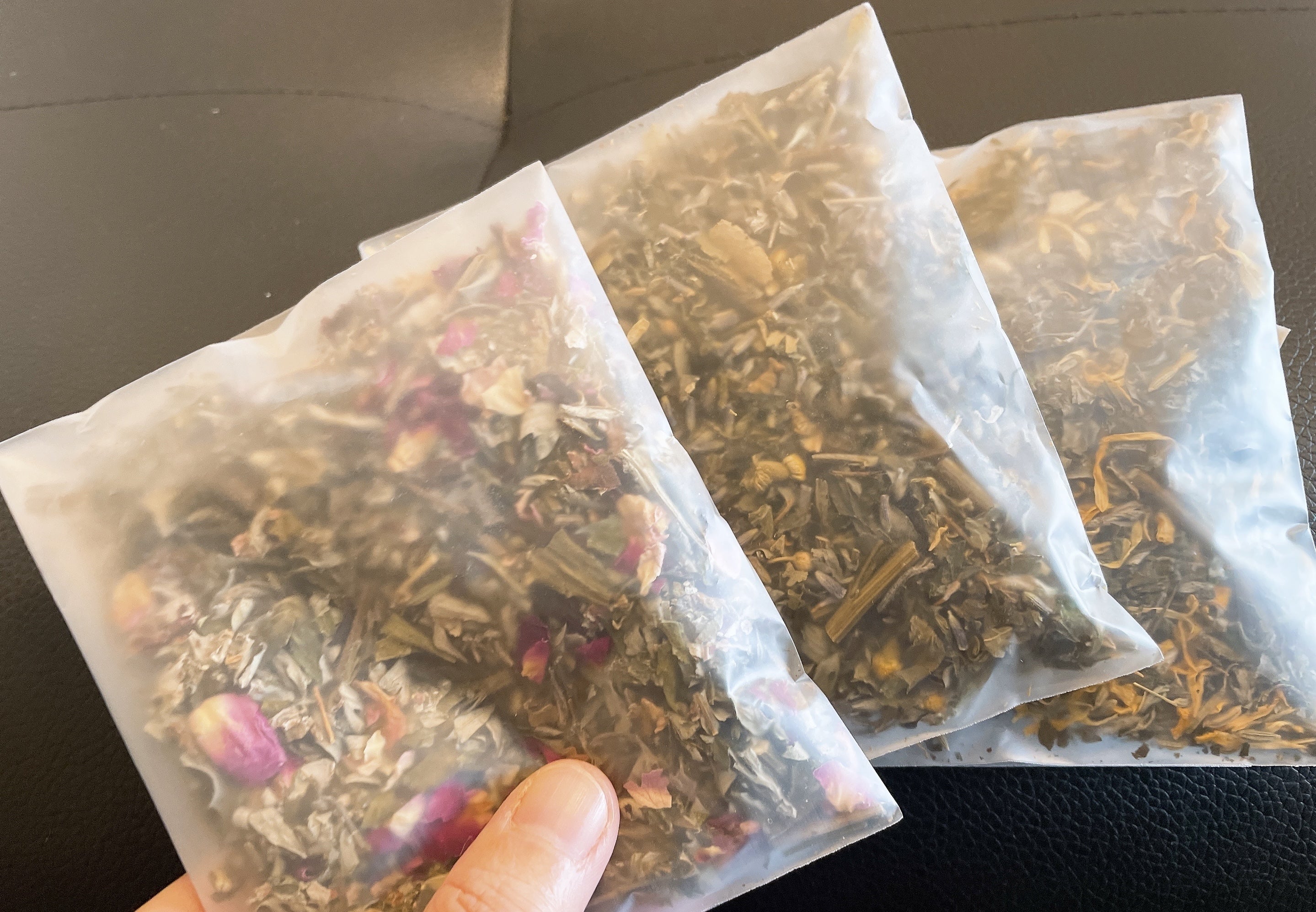 想いを形にするにはよもぎと真菰を合わせたシンプルなよもぎ蒸しの草を作り、ハーブを入れたバスパックを手作りで作ることでした。