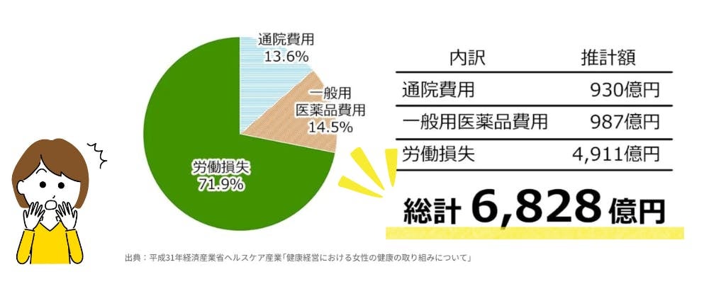 また、就業における生理休暇やパフォーマンス低下による労働損失は、年間6,828億円にも上ります。