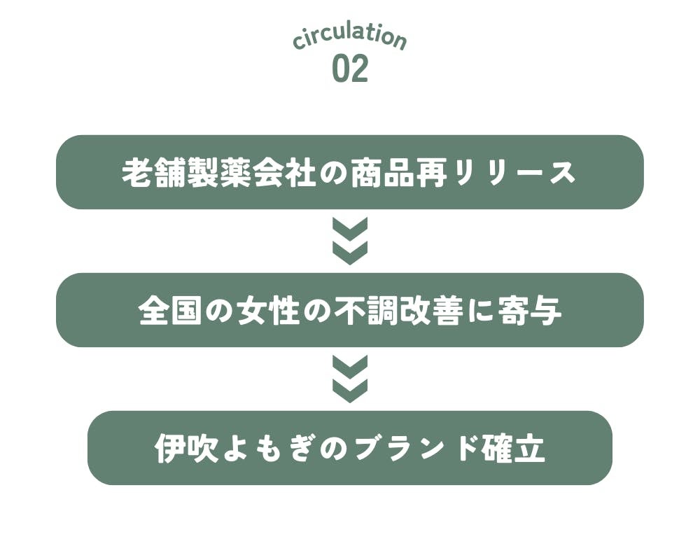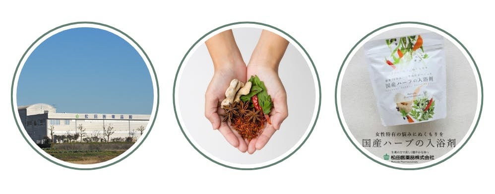 松田医薬品株式会社(創業70年の老舗製薬会社)と共同で開発する医薬部外品の薬草入浴剤は、伊吹よもぎの持つ本来の効能を最大限に引き出します。松田医薬品の「女性の不調に温もりを」というコンセプトをそのまま受け継ぎ、伊吹のよもぎで再現していきます。