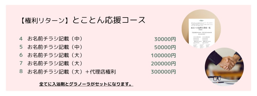 2025/10/28 07:00リターンの中に御社のお名前を掲載させていただくものがございます!お名前掲載でご支援くださった企業様、または個人様は各SNSにてご紹介をさせていただきます。御社の強みや取扱商品、経営理念、お写真などスポンサー企業様としてご紹介します!1回だけでなく商品発送のたびにスポンサー企業様一覧としてチラシに掲載します。今後の、営業活動にぜひご活用ください。名前NGの方はニックネームでも構いません。支援という広告宣伝活動をしていただけませんか?よろしくお願いいたします。 もっと見る