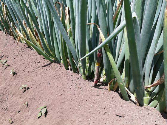 2018/07/25 23:447月23日(月)に四回目の土寄せが終わった久部圃場の白ねぎです。 日差しが強くて、カメラの画面がよく見えなかったので上手に撮れなった画像で申し訳ありません。 画面中央(やや右寄り)に白ねぎに紛れて、竹の棒が立っているのが分かりますでしょうか? 竹の棒には、赤と黄色のテープが巻いてあります。一番下の赤いテープは20センチの高さを表しています。現在、白ねぎは17㎝ほど土寄せされていることになります。 赤いテープの上の黄色のテープは、30㎝の高さにあります。「白ねぎ」として出荷するには、白い部分が30㎝ないといけないので、土寄せは一番上の赤いテープ、高さ35㎝を目指して行きます。 気温が高い時期は生育が悪いので、土寄せができません。五回目の土寄せは、気温の下がり始める9月になります。8月は、病気の防除と除草が主な作業となります。 もっと見る