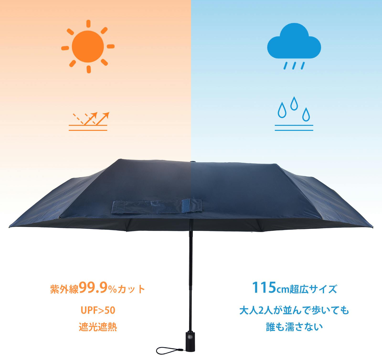 SUPWELLの自動開閉傘「LARGE」は、直径115cmの超ワイドサイズで、雨の日でもしっかりとカバー。