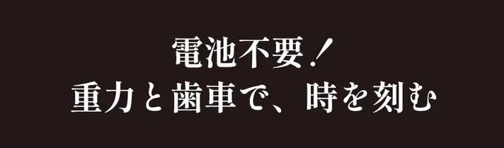 この時計は電池を使わず、重りの重力と精密な歯車によって動作します。
