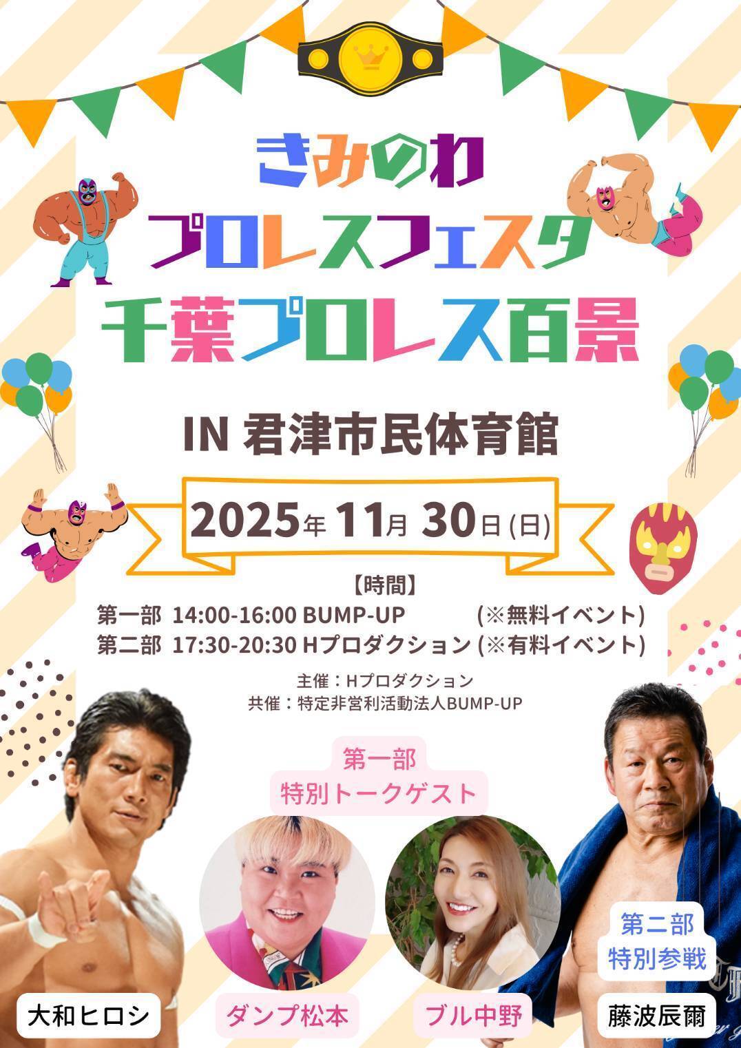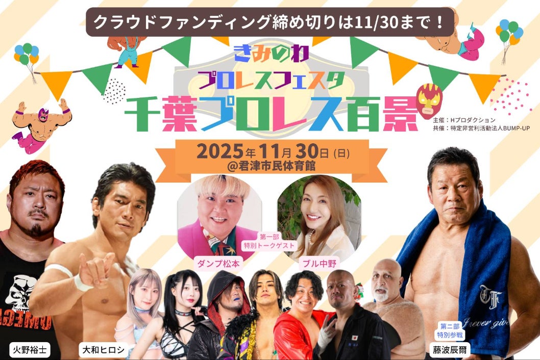特定非営利活動法人「BUMP-UP」と大和ヒロシ(君津市議会議員/プロレスラー)が、2025年11月30日(日)、君津市民体育館で「児童虐待防止・いじめ撲滅」をテーマにしたチャリティイベントを開催します。
