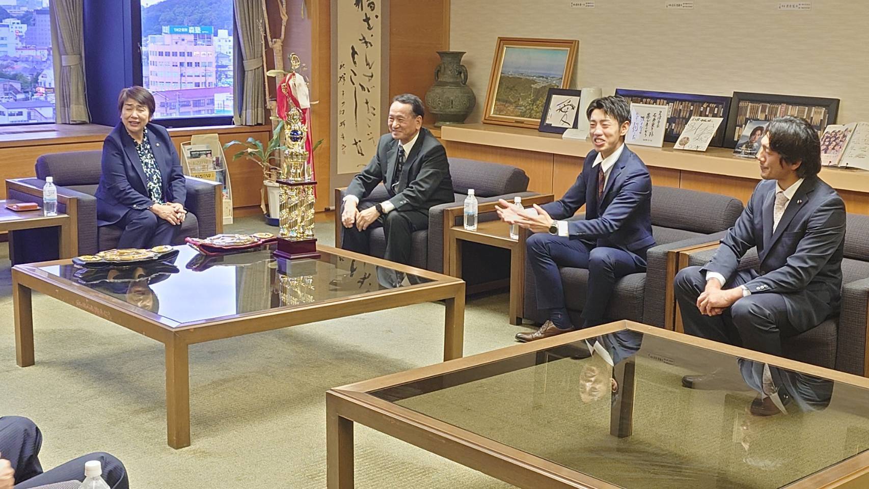 9月23日に開催されたKNOCK OUT.57にて、KNOCK OUT-BLACKスーパーバンタム級とKNOCK OUT-REDスーパーバンタム級の統一王者となられた北流会君津ジムの森岡悠樹選手と町田会長が石井市長を表敬訪問されました。