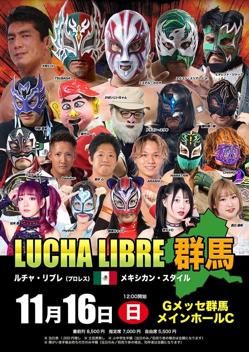 本日は群馬県高崎市にて開催されるLUCHA LIBRE群馬に参戦!