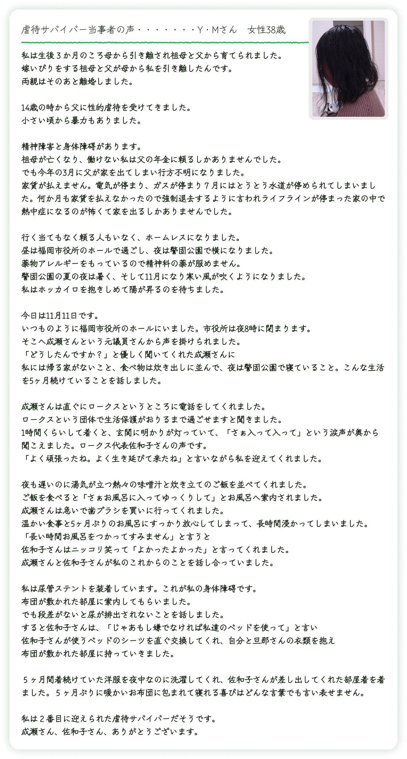 はじめまして。虐待サバイバーを支えるべく、