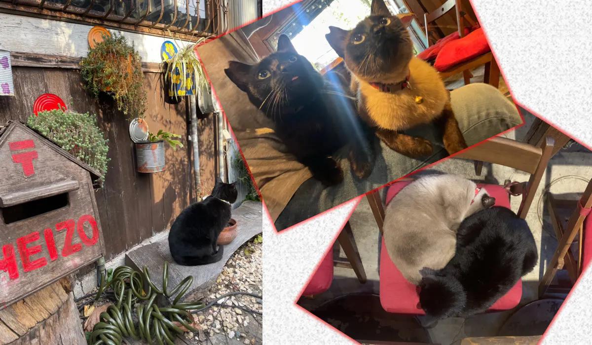 花園スペインバル HEIZOには2匹の保護猫がいます。昔からこの「なごみ横丁」に住み着いていた野良猫です。