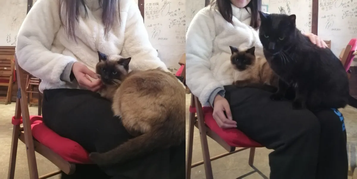 左の猫がシロ、右の黒い猫がクロですお店に来ていただきましたら、この2匹の猫が皆様をお出迎えいたしますよ。