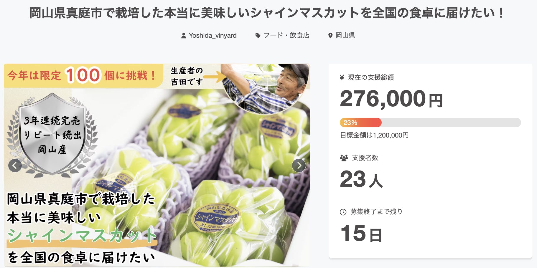 これまでは、JAや道の駅で販売することがほぼでしたが、クラウドファンディングを通じて全国の皆様に購入してもらえる、よしだ葡萄園のぶどうを食べてもらえるというのがすごく楽しみです!