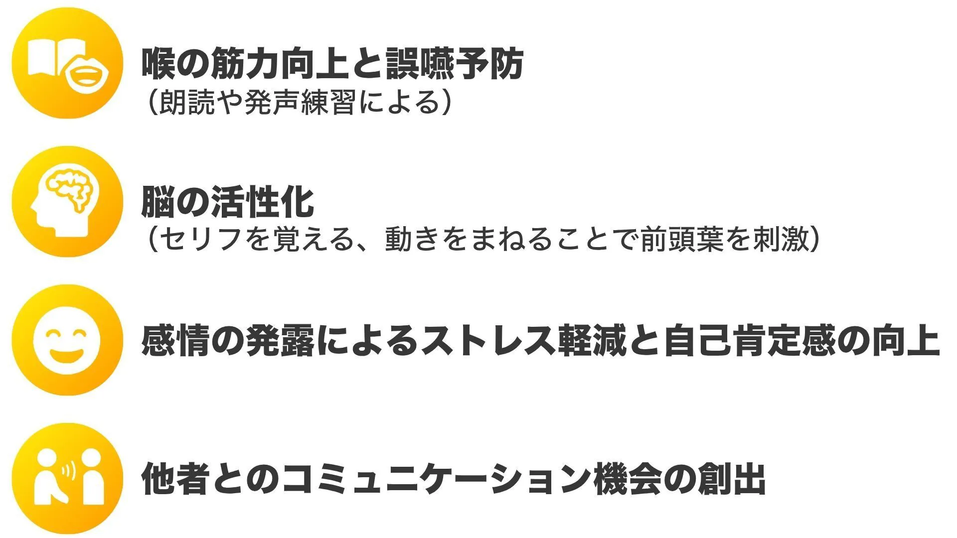 この教室では、以下のような身体的・心理的な効果が期待できます。