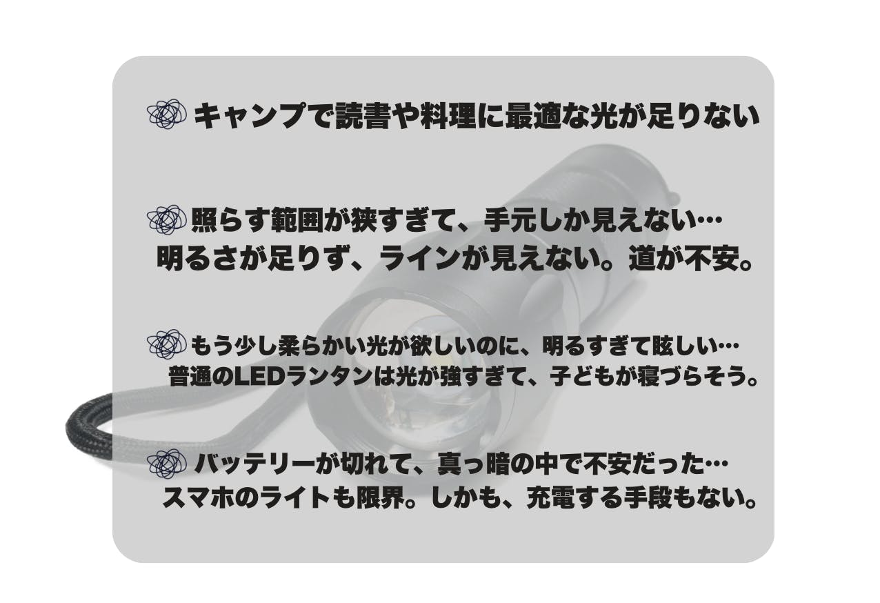 キャンプや夜間の屋外活動では、「ただ明るければいい」わけではありません。