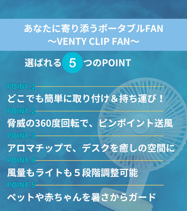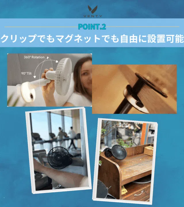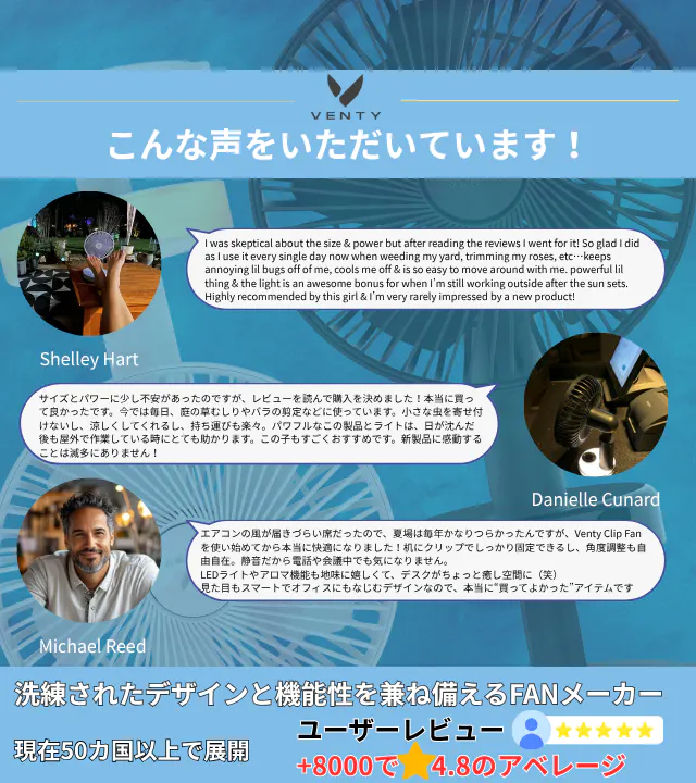 Webサイト:https://www.ventyfan.com/products/clip-fan?srsltid=AfmBOooAfg-rSmsVD28wE-edAoT5BnOAGMMZ_JTIvHtJ5IE9TV0sJA8h