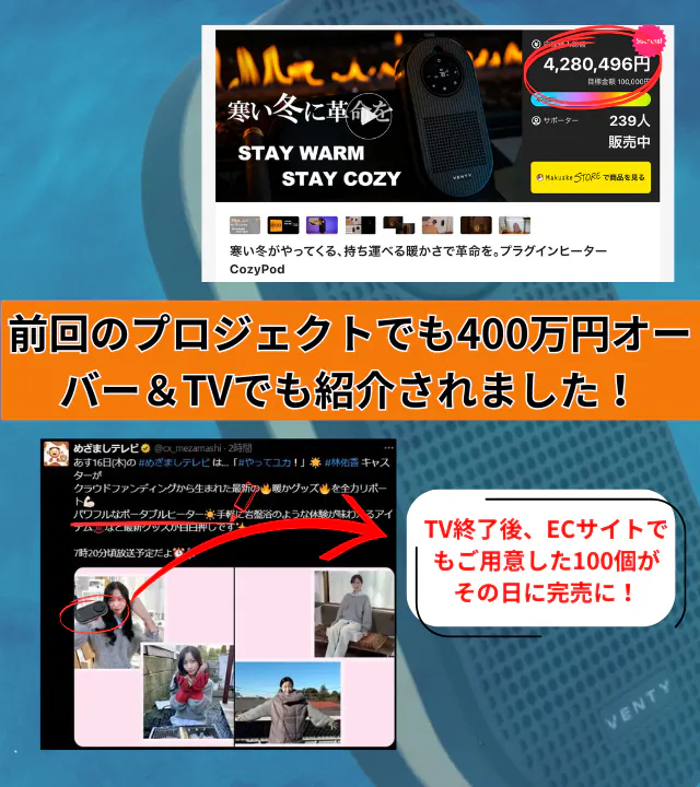 前回のプロジェクトでも420万円&230名のサポーターを獲得したVENTYシリーズがパワーアップしてCAMPFIREに新登場!