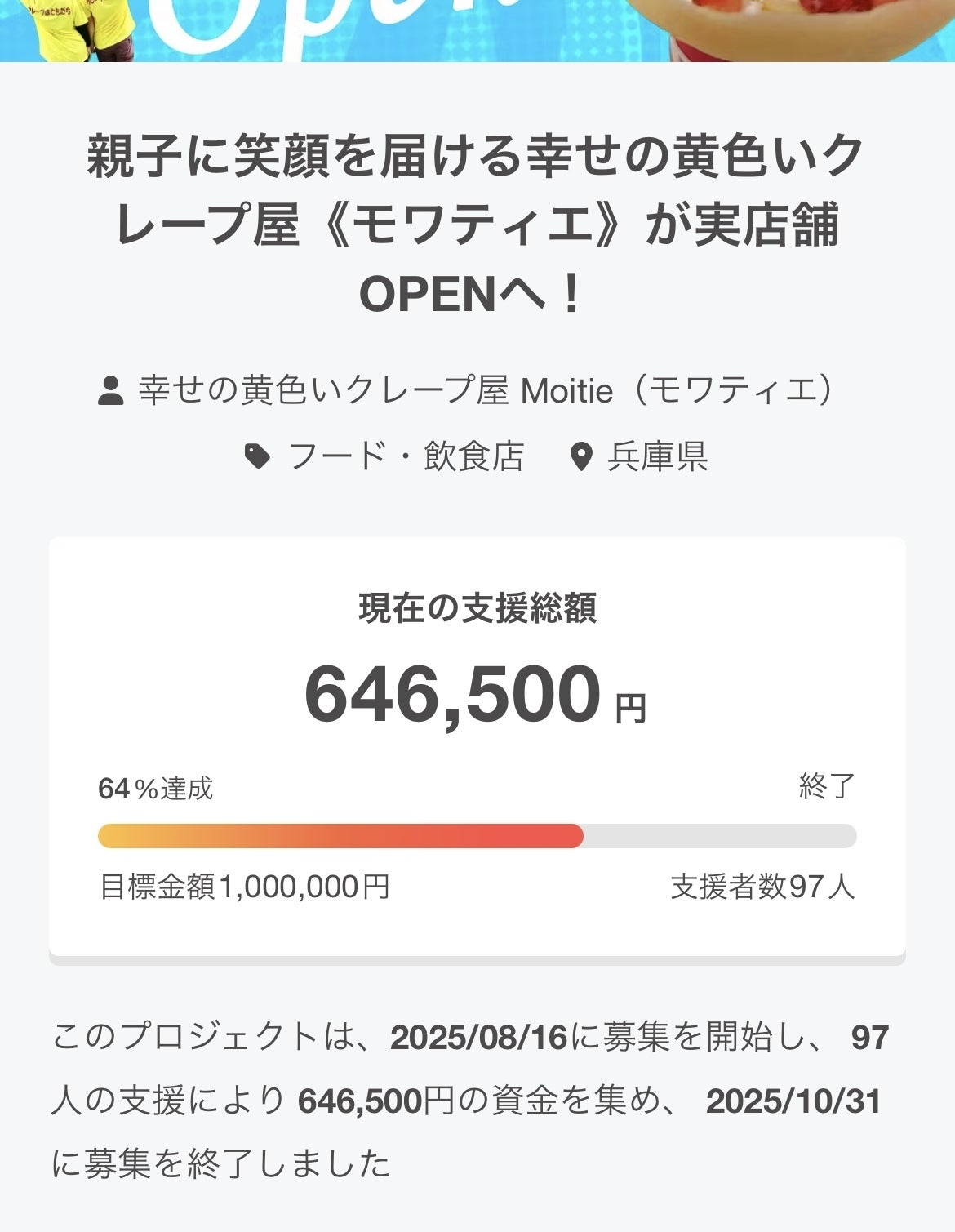 このプロジェクトは、2025/08/16に募集を開始し、 97人の支援により 646,500円の資金を集め、 2025/10/31に募集を終了しました