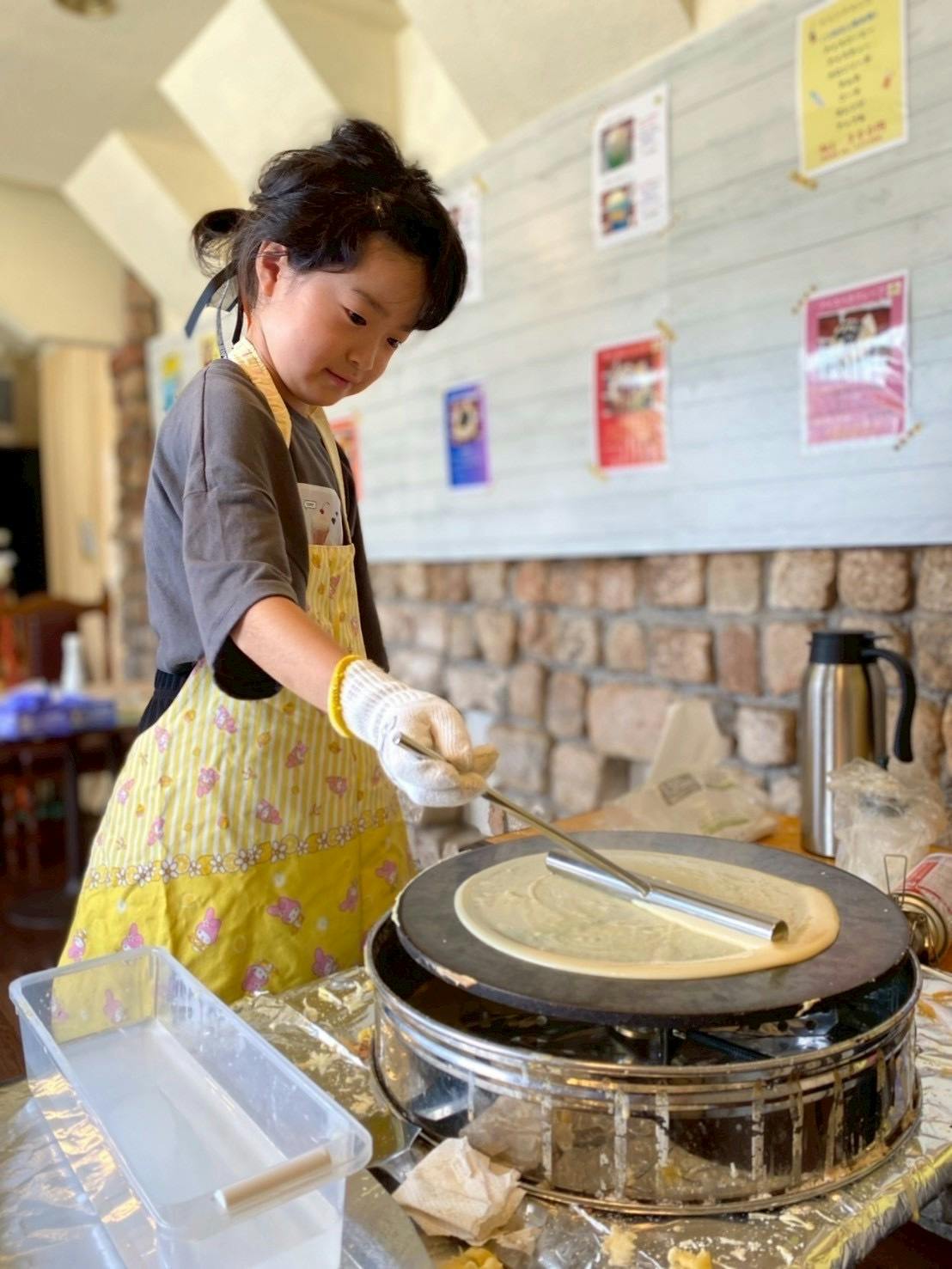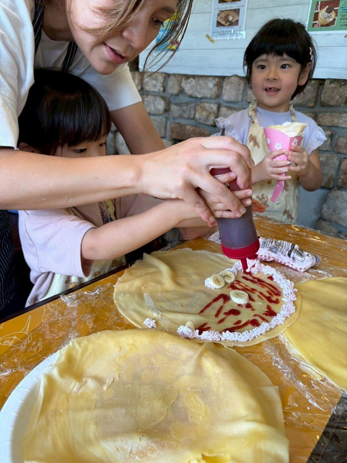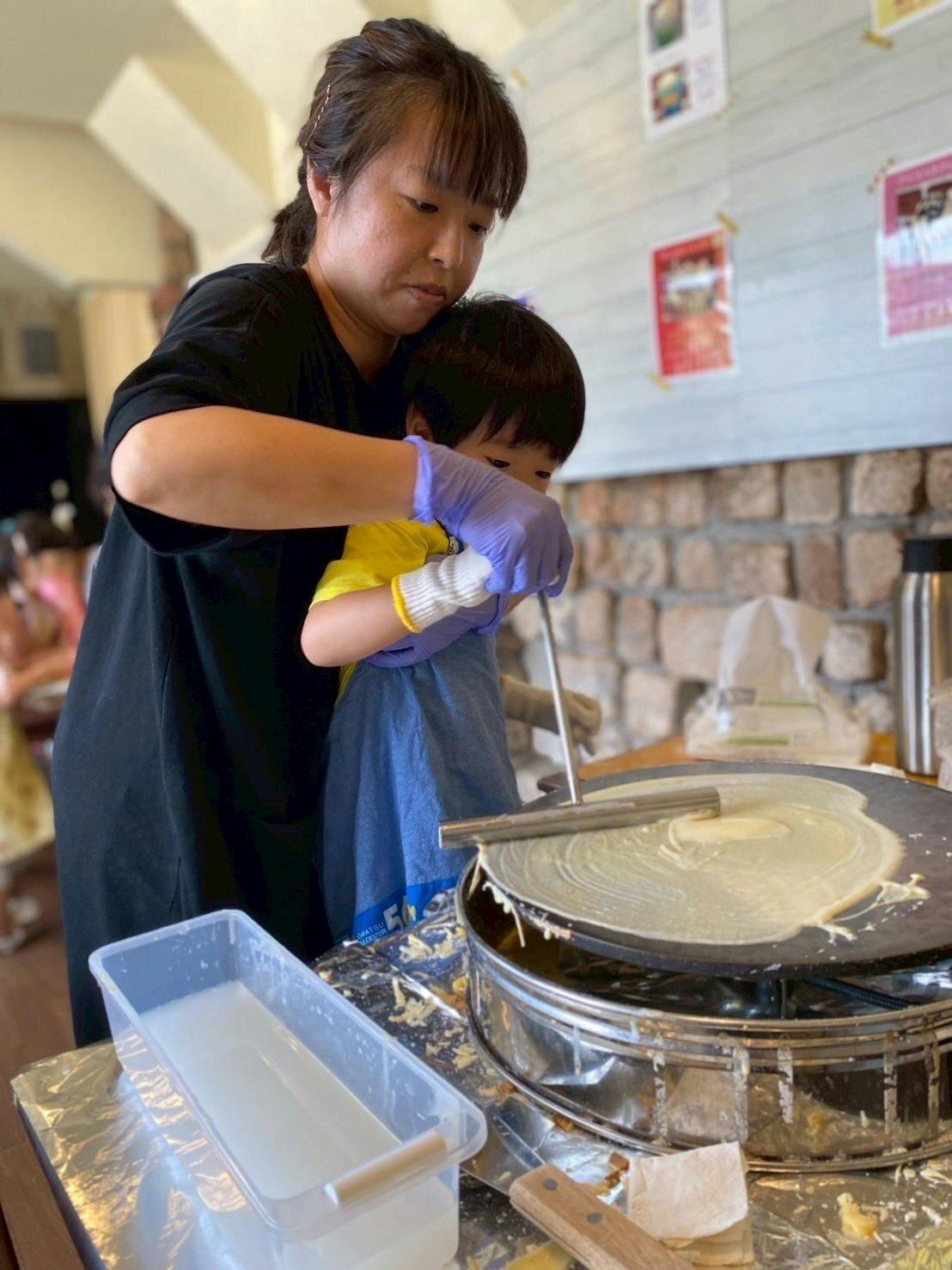 写真は先月、お友達親子に協力してもらい、クラファンのリターン品にある親子で体験可能!「クレープ教室」のシュミレーションをしました!