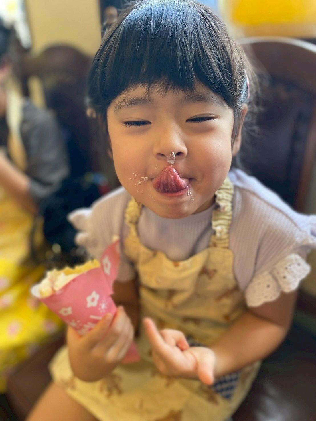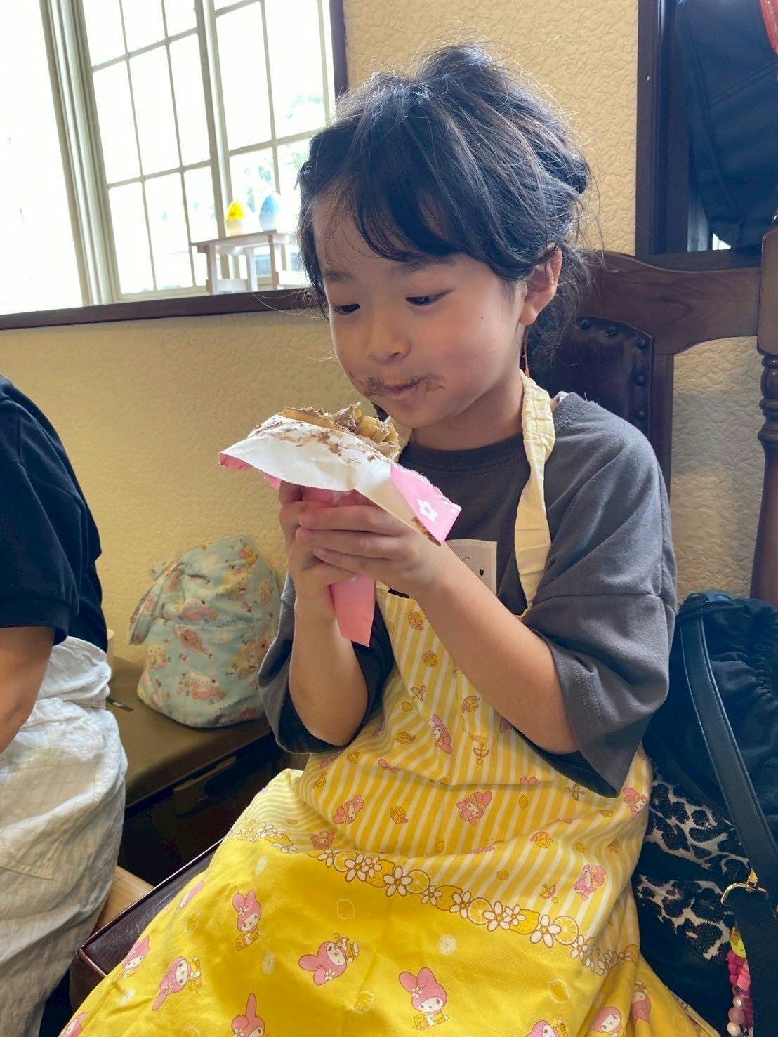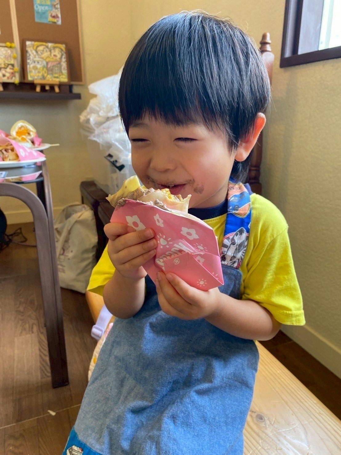 みんなの分が出来たら、さぁお待ちかねの試食タイム!みんな可愛いお顔で食べてくれていました!焼き体験から盛り付け体験まで、全部自分たちでやったので、試食で食べたクレープは格別だったことでしょう!そう信じたい!!
