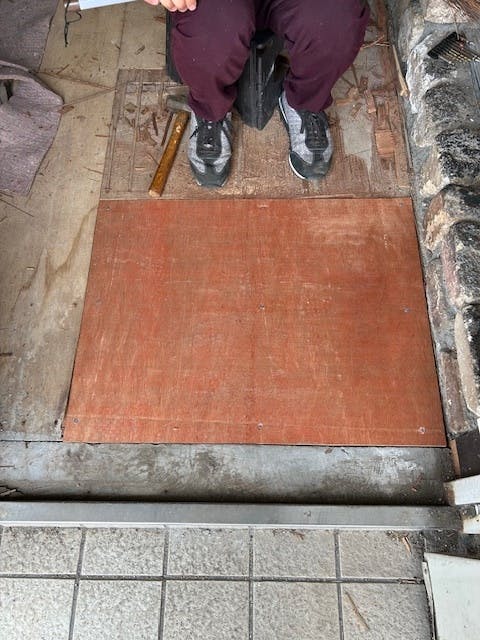 はがした床の上に新しいコンパネを打ち付けて、なんとか完成!苦労しながらですが、初心者の我々にもできました!!小さなスペースですが、自分たちでも出来たことがとても嬉しかったです!