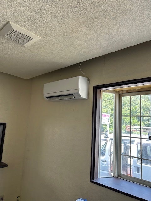 ついに、念願の「エアコン」が設置されました!専門的なことは職人の父に教わりながら、自分たちで出来ることをやって、取り付け完了!建物の構造上、取り付け場所が限られていてエアコンの向きは微妙ですが、それを補うための扇風機も取り付けました。