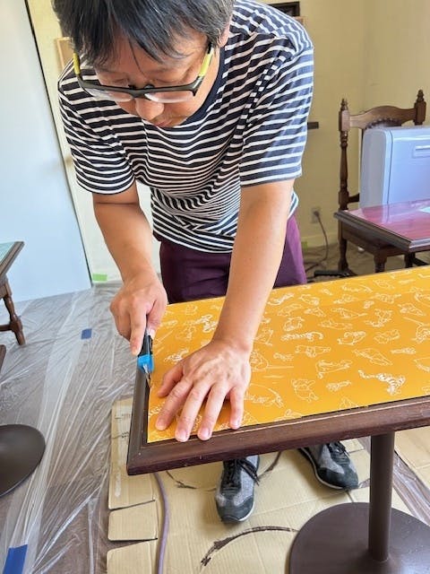 歴史あるこのテーブルをリメイクシートで変身させました。