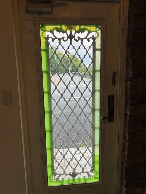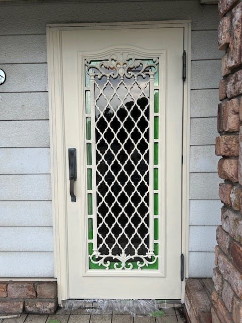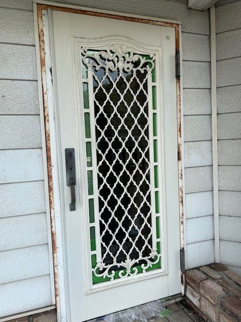 次は出入口のドアです。せっかくオシャレなドアなのに、長年の汚れやサビが物凄く気になる・・・。「よし!ペンキだ!」と思い立って、以前壁を塗った時のペンキがまだ残っていたのでそれを使って塗ることにしました。すでにペンキ塗りの経験があるので準備はスムーズ!しっかりと養生して塗りました。成長したなぁ私たち(笑)