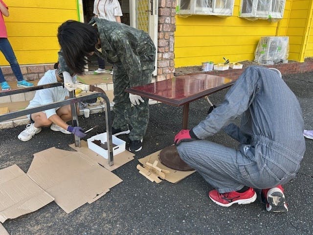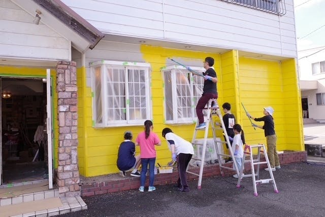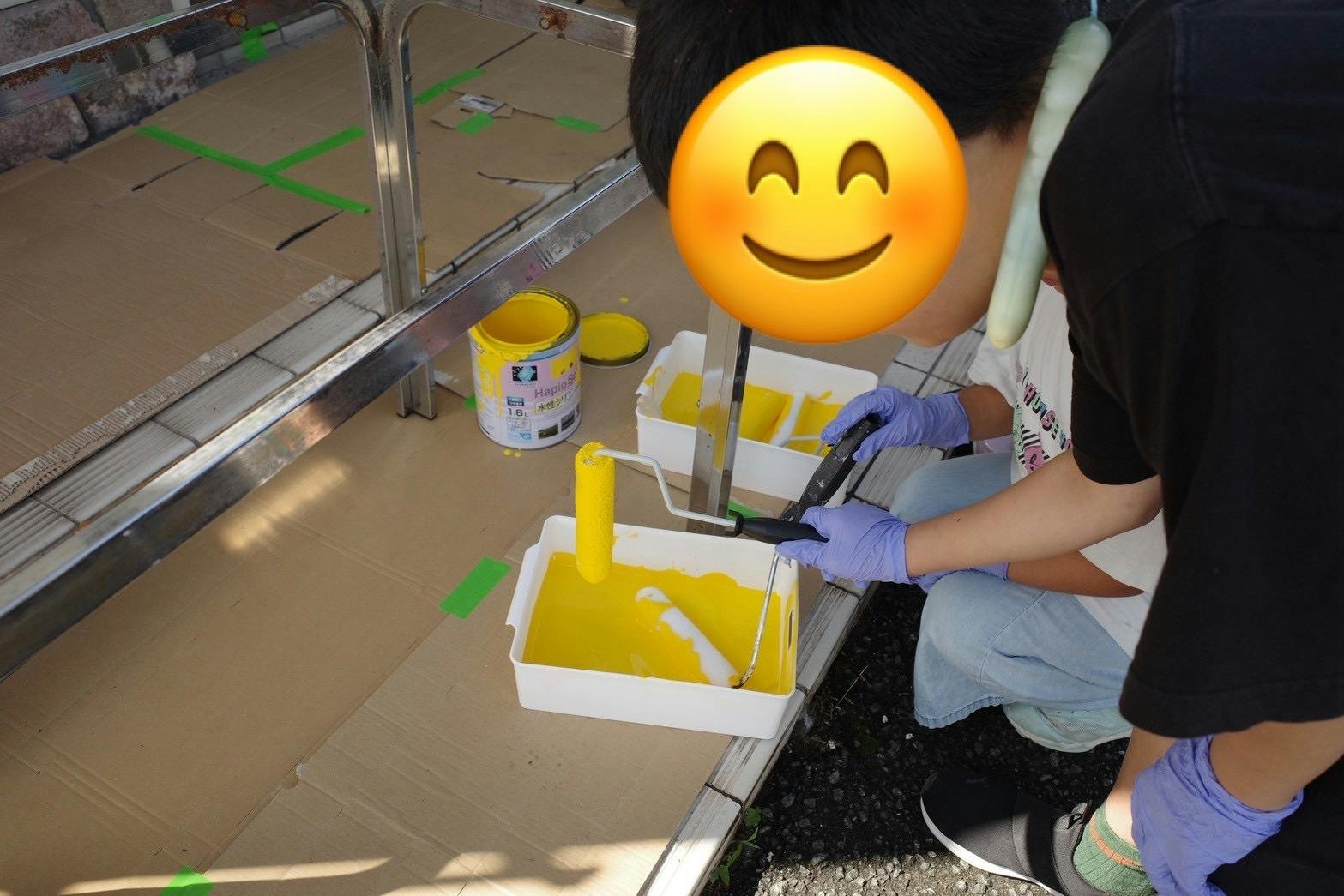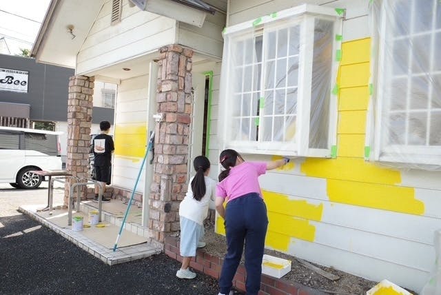 私たちだけでは何日かかるか不安・・・というわけで、キッチンカーオープン当初からの常連さんご家族や、教え子ちゃんご家族に協力してもらい、「ペンキ塗りの日」が実現!