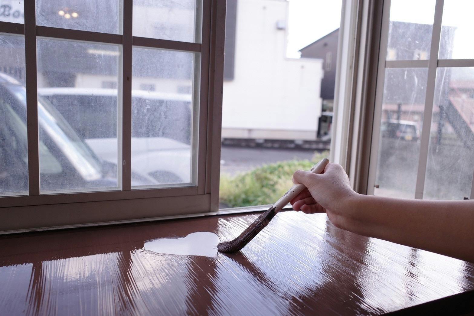 「喫茶ビリオン」から受け継いだ、店舗で使用のテーブルもペンキを塗ってもらってリメイク!